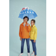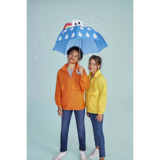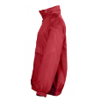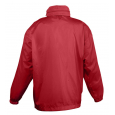 Водонепроницаемая, вентиляционные отверстия, безопасный шнур по низу изделия. Капюшон убирается в воротник. Два наружных кармана на молнии. Ветровка может быть сложена в карман и закреплена эластичным ремнем на талии.
