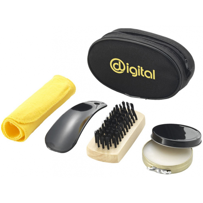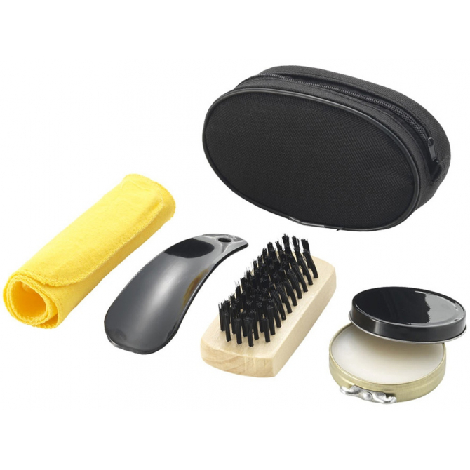 Набор для ухода за обувью - отличный подарок для тех, кто часто ездит в деловые поездки. В наборе такие необходимые аксессуары, как бесцветный крем для обуви, ложка, щетка, салфетка для полировки. Компактно упакованы в нетканый чехол, на который можно нанести изображение.