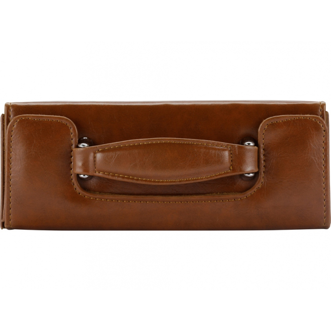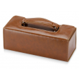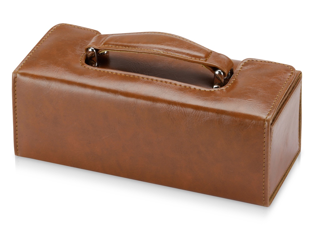 Настоящий сундучок из коричневого кожзама содержит целую кладезь полезных аксессуаров для чистки обуви. Набор не занимает много места при хранении и всегда готов прийти на помощь в поддержании чистоты вашей обуви. В набор входит 8 предметов. На футляр можно нанести логотип.