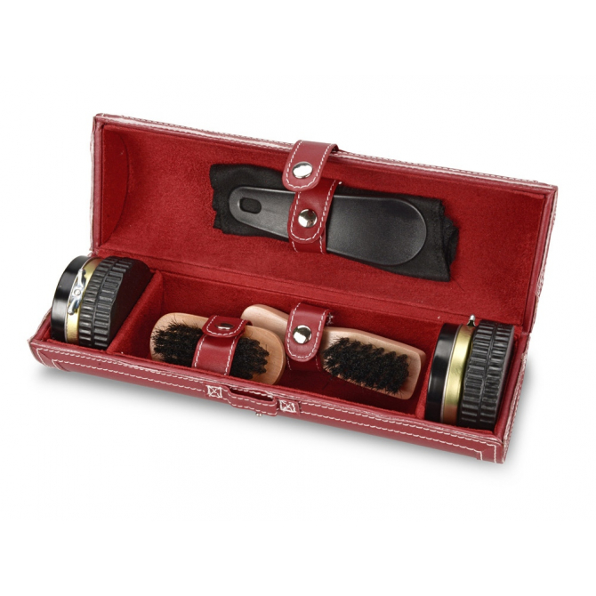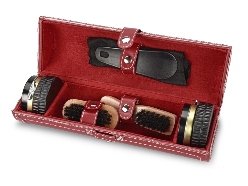 Подарочный набор для чистки обуви включает в себя 8 предметов, которые предназначены для поддержания чистоты вашей обуви. В комплект входят чистящие средства, так что не придется покупать их отдельно. Набор упакован в солидный футляр под кожу, который удобно брать в дорогу, в командировку. Набор представлен также и в других цветах.