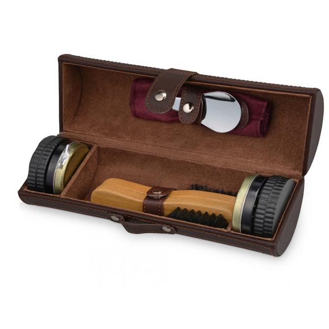 Подарочный набор для чистки обуви включает в себя 8 предметов, которые предназначены для поддержания чистоты вашей обуви. В комплект входят чистящие средства, так что не придется покупать их отдельно. Набор упакован в солидный футляр под кожу, который удобно брать в дорогу, в командировку. Набор представлен также и в других цветах.