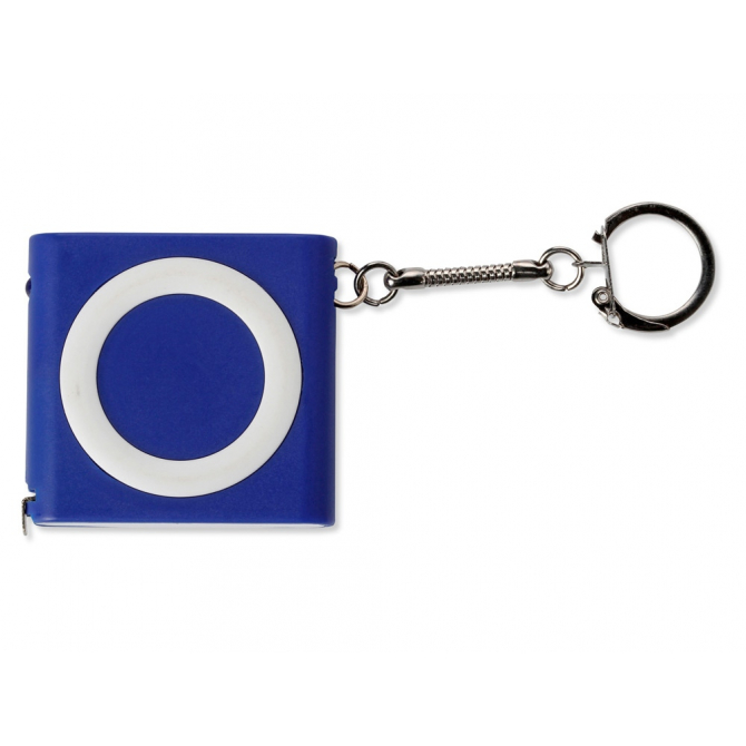 Брелок-рулетка с фонариком. 1 м., синий/белый
