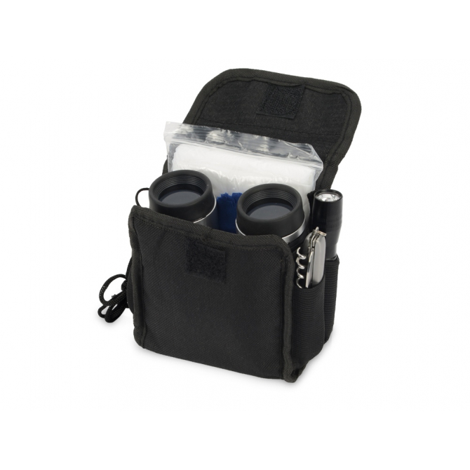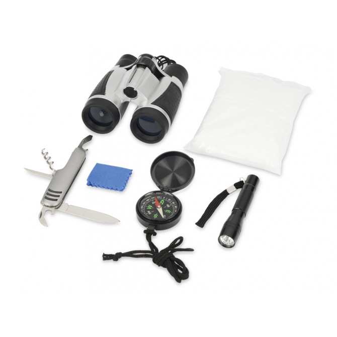 Набор путешественника: бинокль 4х30, мультиинструмент, фонарь, компас, дождевик, салфетка