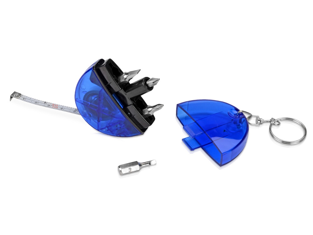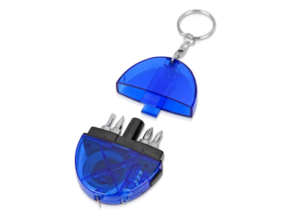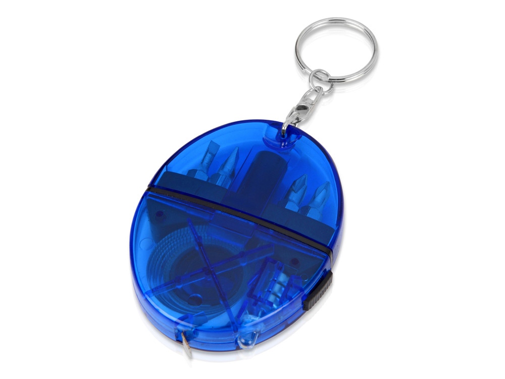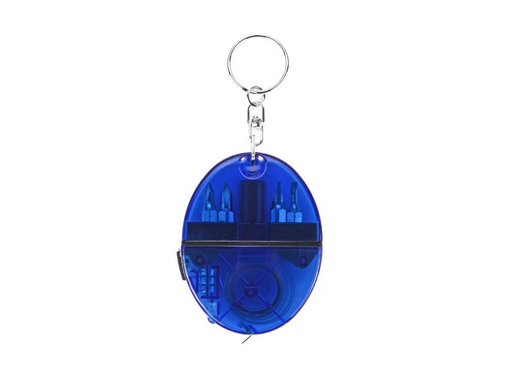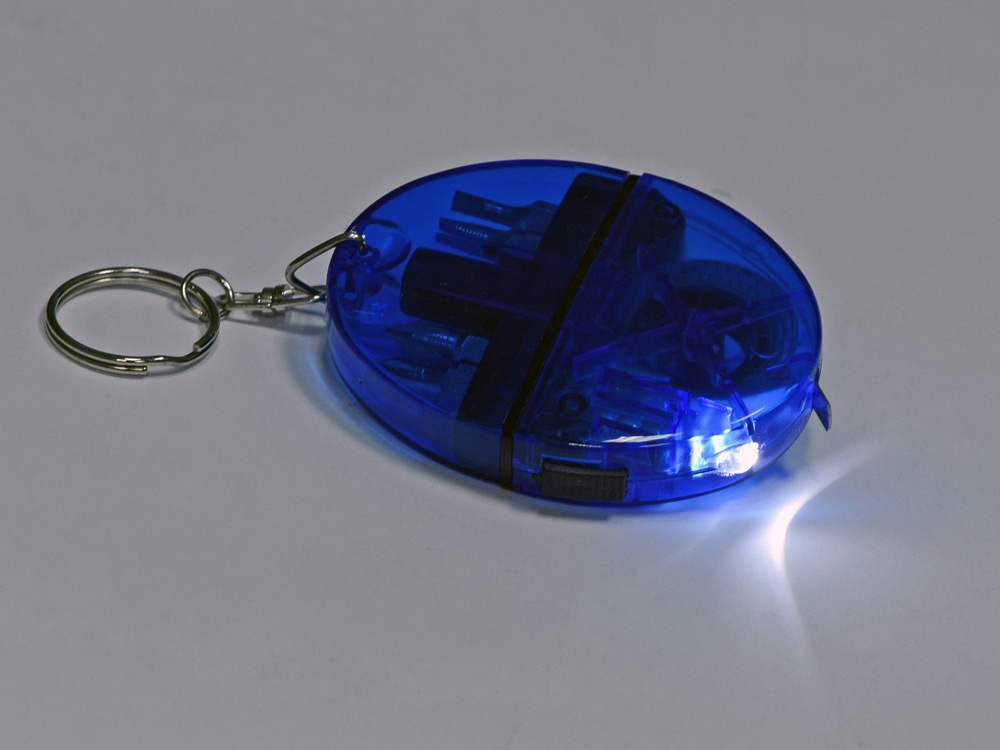 Брелок-рулетка с набором отверток и фонариком, синий