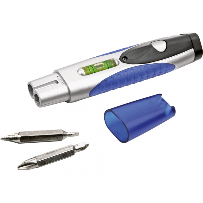 Отличное приспособление для небольшого ремонта даже в самых труднодоступных и плохо освещенных местах. Набор отверток, фонарик и уровень делают этот мультиинструмент незаменимым в стесненных условиях.