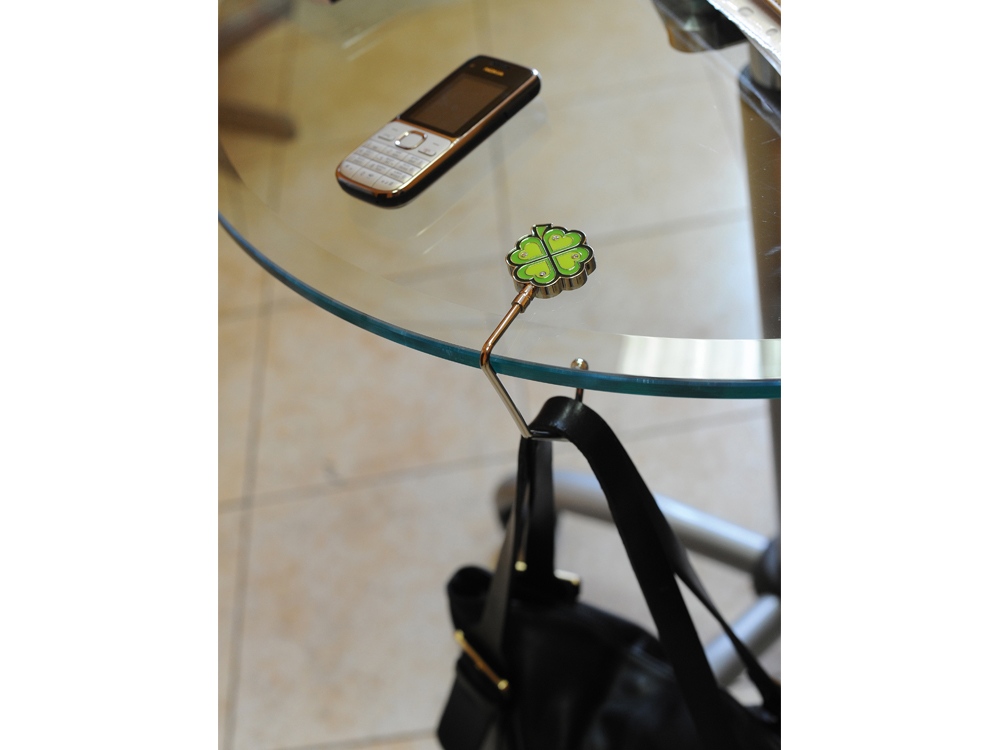 Набор Дамское счастье: шариковая ручка, крючок для ключей, складной крючок для сумки с карабином и шильдом, крючок для сумки в виде листочков клевера с четырьмя лепестками