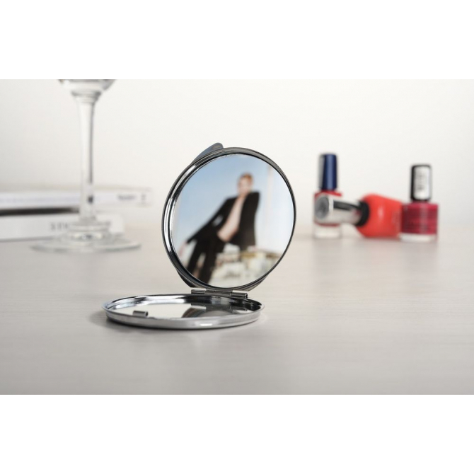 Двойное зеркальце: обычное и увеличивающее. В комплекте тканевый чехол.
