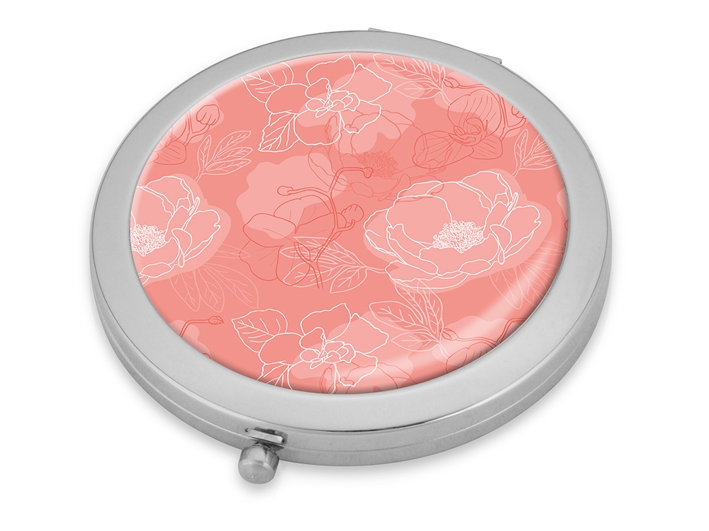Зеркало, как оно бывает необходимо! Складное зеркальце, которое не поцарапается в сумочке, станет отличным подарком для любой женщины. Металлическую поверхность крышки можно украсить объёмной наклейкой по вашему эскизу, а на оборотной стороне сделать именную гравировку.