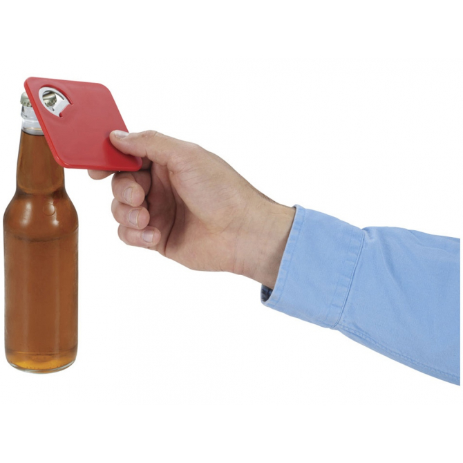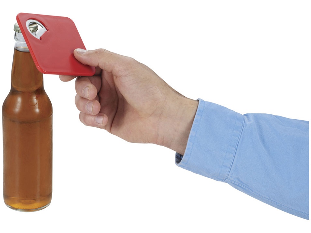 Костер Rally с открывалкой. Квадратный костер с интегрированной открывалкой и нижним покрытием из пены для предотвращения скольжения. АБС пластик.