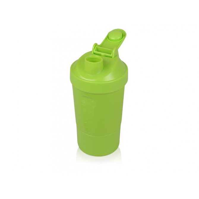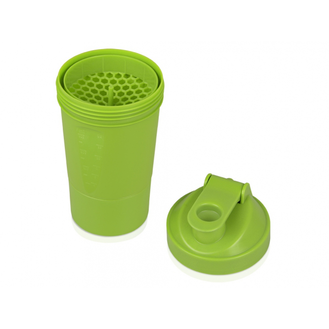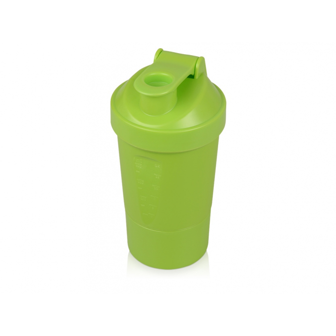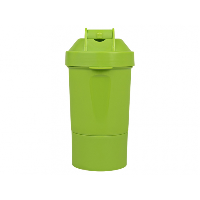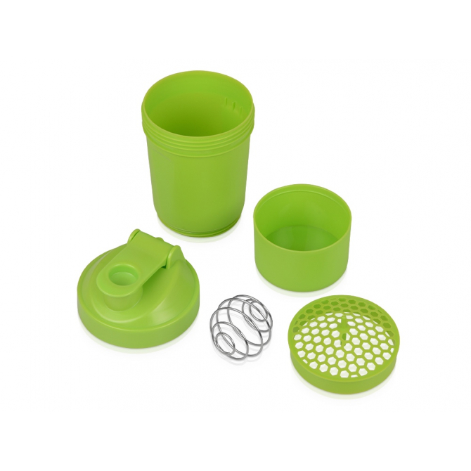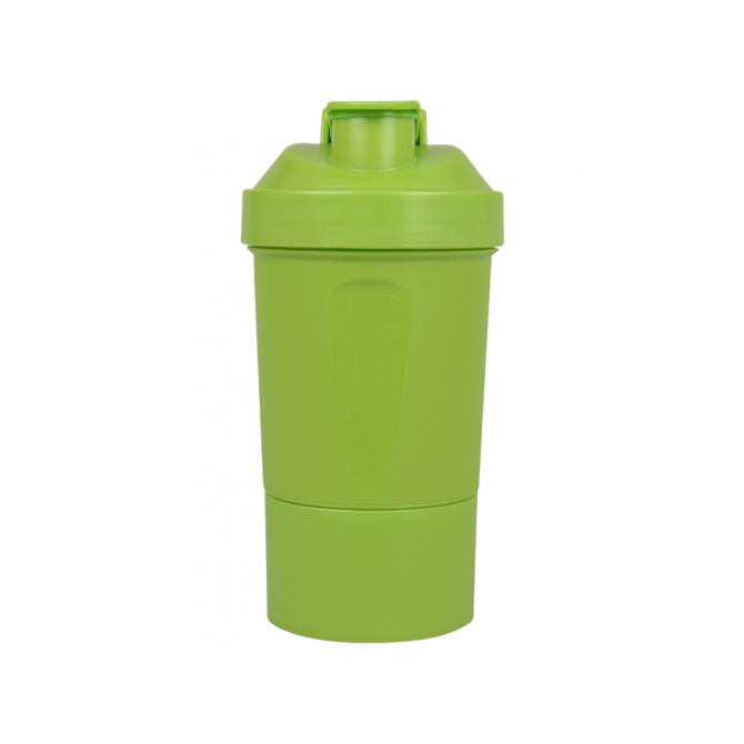 Шейкер для спортивного питания - это один из необходимых аксессуаров для спортсменов и людей, ведущих активный образ жизни. В нем можно приготовить протеиновый коктейль или фруктовый напиток. Шейкер классической формы, он удобно лежит в руке, к донышку прикручивается емкость для смешивания (таблетница), в которой можно хранить спортивные добавки: протеиновый порошок, витамины и другие концентраты. Внутри колбы имеется пластиковая сетка, чтобы процеживать спортивный напиток, а также металлический размешиватель, который растворяет порошок в напитке без комочков. Объем - 400мл. Шейкер изготовлен из пищевого пластика, он герметичен и легко моется.