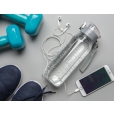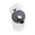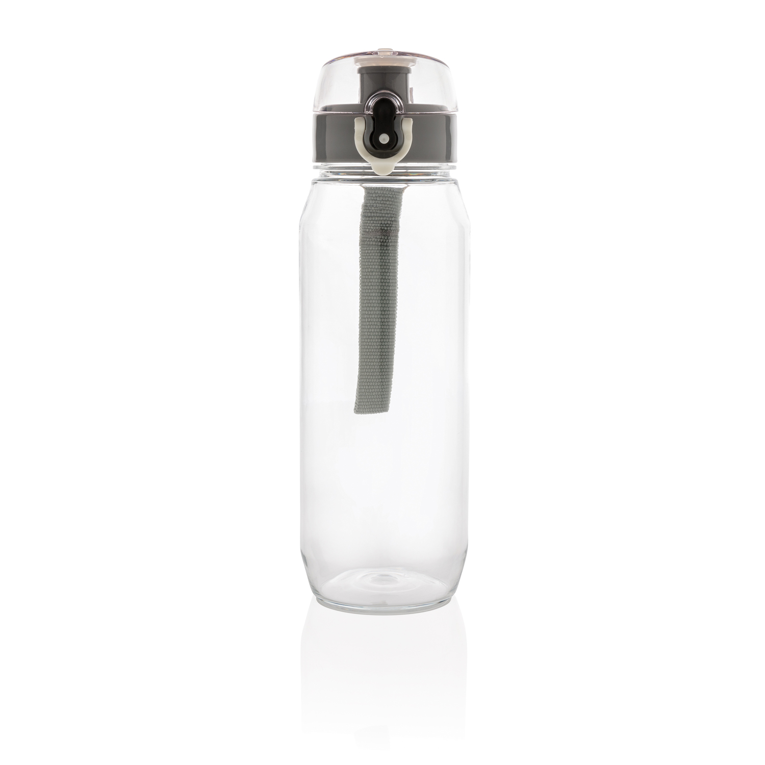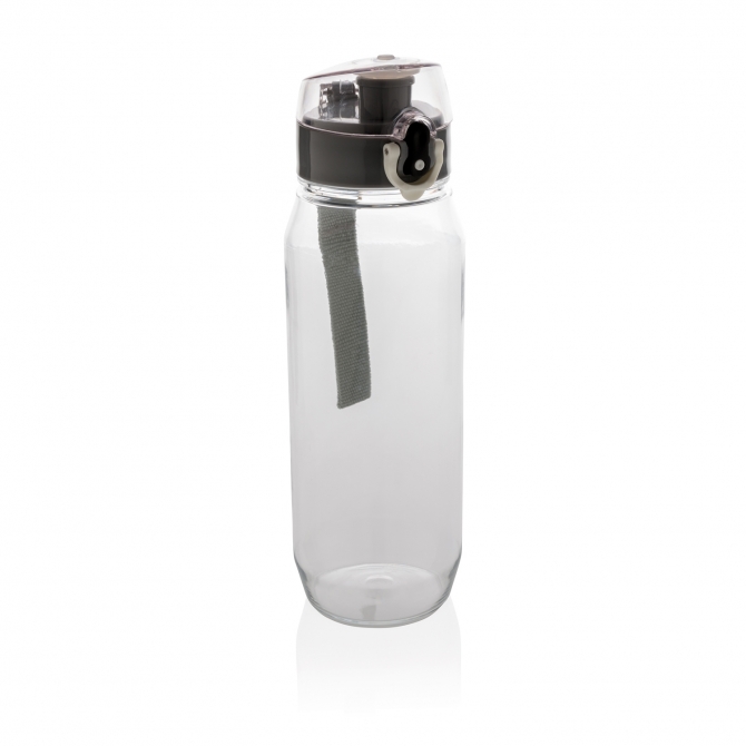 Бутылка для воды Tritan объемом 800 мл. Прозрачная бутылка из экологичного материала, который не впитывает запахи и не содержит бисфенол. У бутылки удобная крышка, которая открывается нажатием на кнопку, есть фиксатор, который не позволит бутылке случайно открыться во время движения. В комплект входит ремешок для запястья.