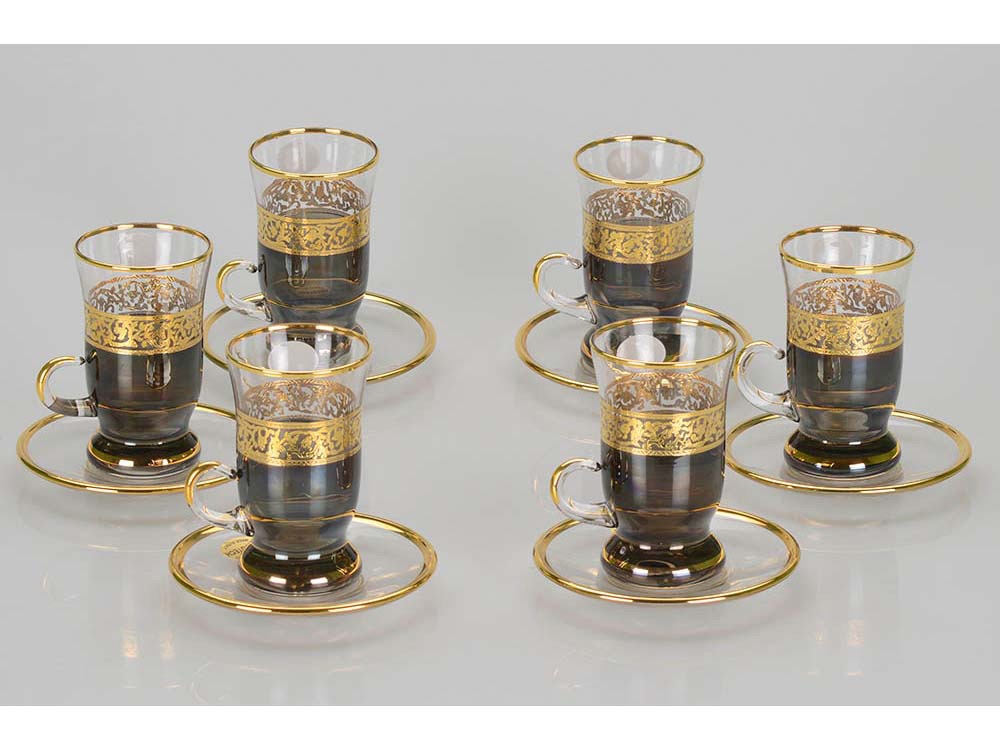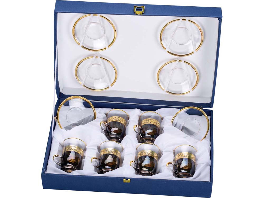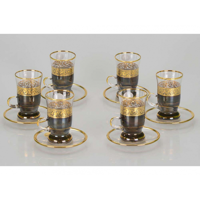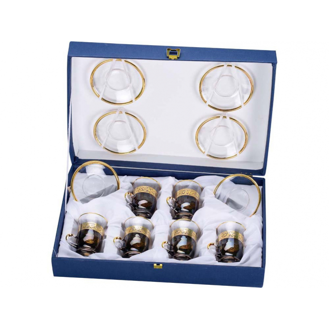 Чайный набор обладает изысканным внешним видом. В состав входят небольшие чашки и блюдца из хрусталя с золотистой отделкой. Набор отлично подходит в качестве подарка как мужчинам, так и женщинам.