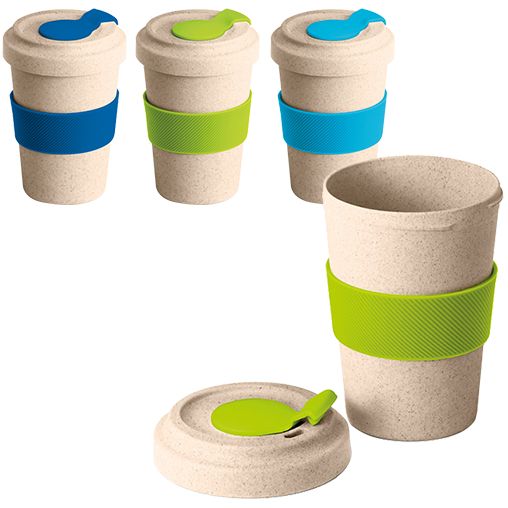 Чашка из бамбукового волокна с крышкой и силиконовой манжетой.