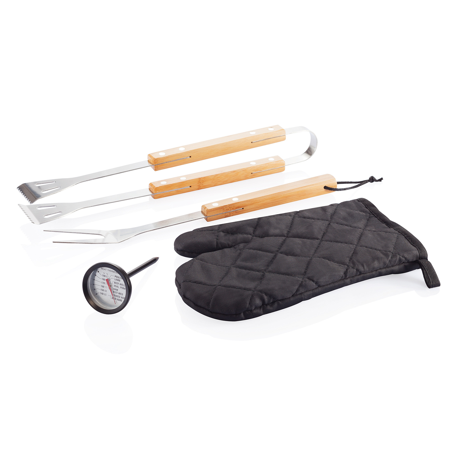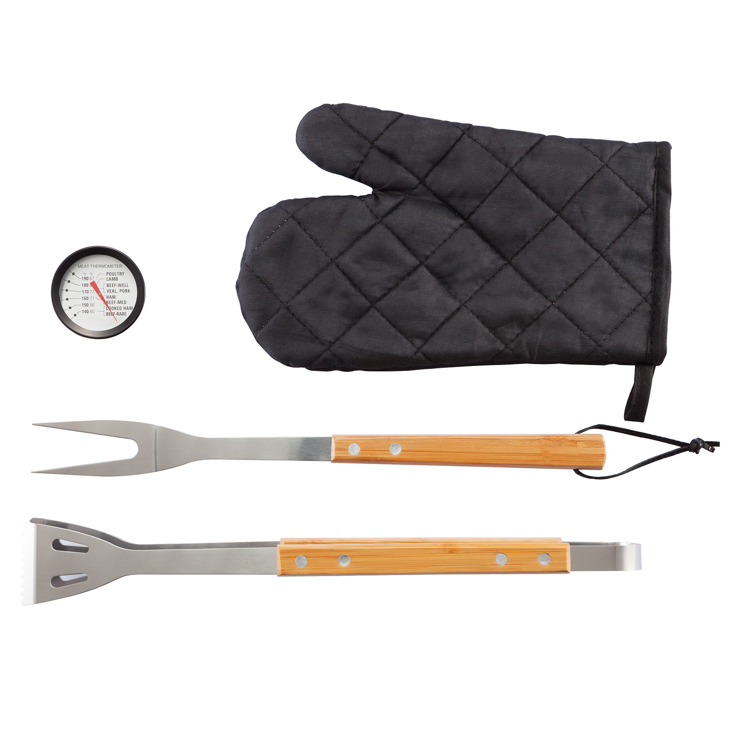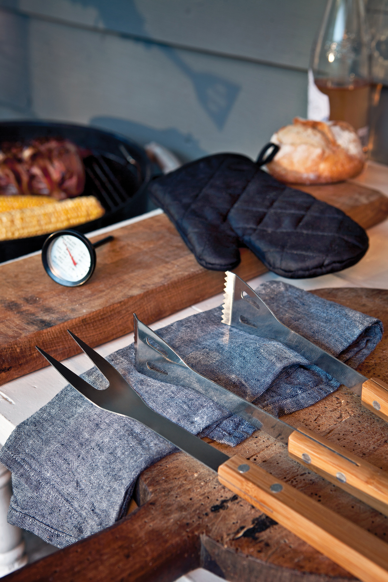 нержавеющей стали, прихватку-варежку и термометр для мяса.