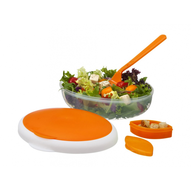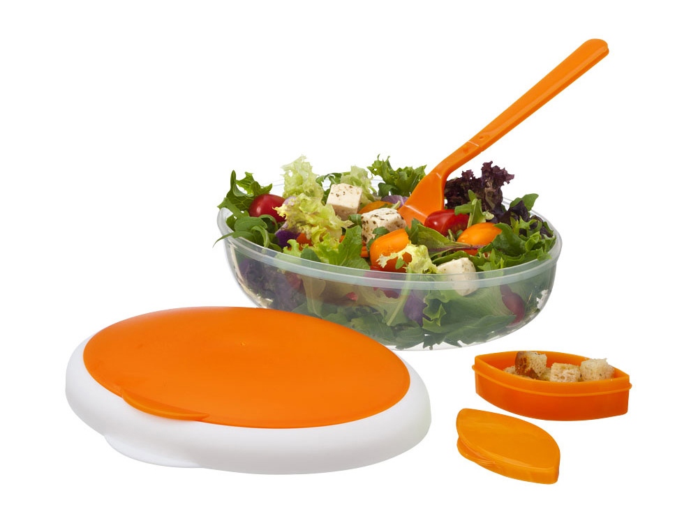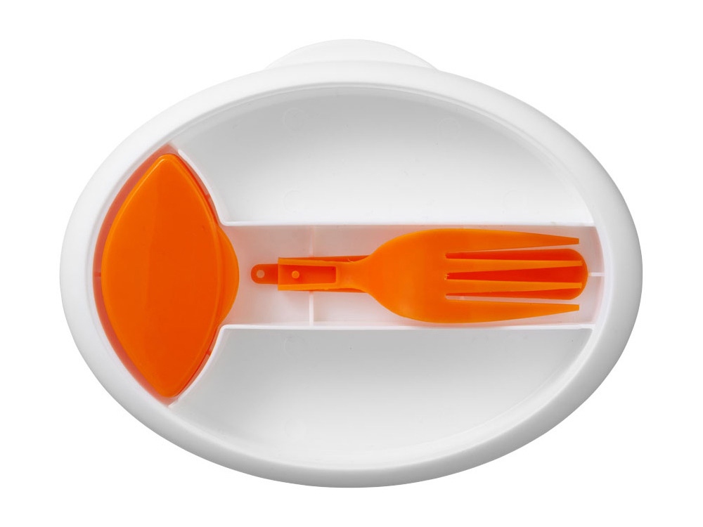 Ланч-бокс Maalbox. Ланч-бокс со складной вилкой и емкостью для приправ с крышкой. Объем – 400 мл. Контейнер можно нагревать в микроволновой печи. ПП-пластик.