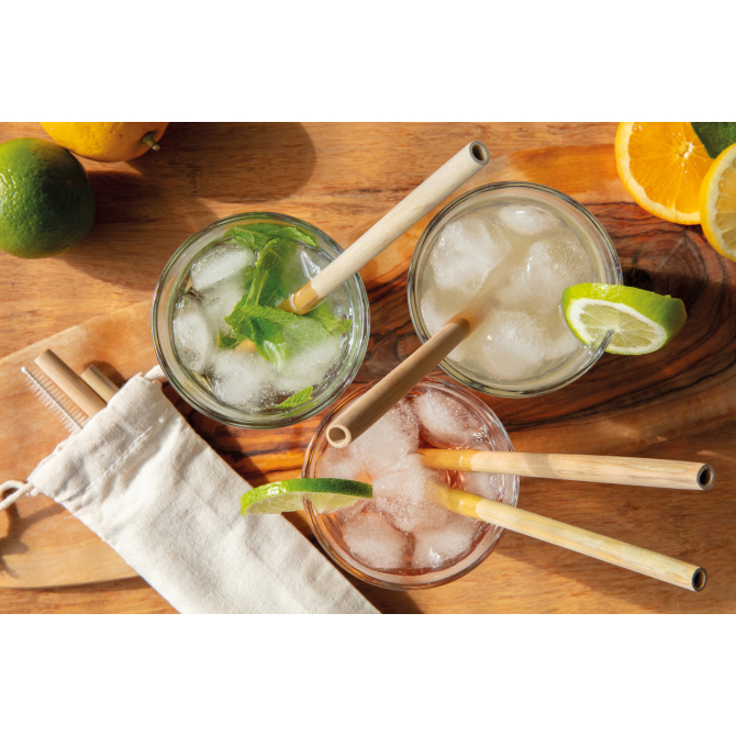 Экологическая альтернатива пластиковой соломке — сильный и прочный бамбук. Eco-friendly трубочки можно мыть в посудомоечной машине и многократно использовать. Они идеально подходят для горячих напитков, таких как чай, кофе или холодных напитков, как смузи и других коктейлей. Питье через соломинку снижает риск повреждения эмали зубов, потому что сахар и кислоты практически не попадают на нее. Благодаря натуральному бамбуковому материалу диаметр соломинок может варьироваться от 0,6 до 1 см. В комплекте с ершиком.