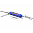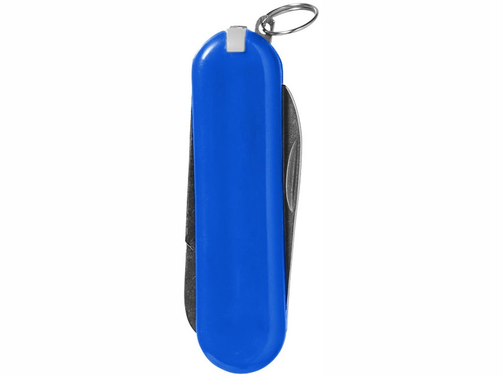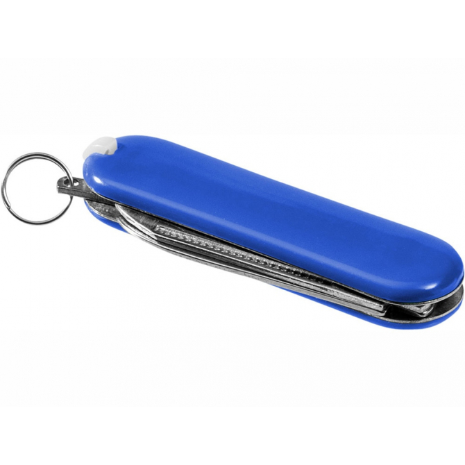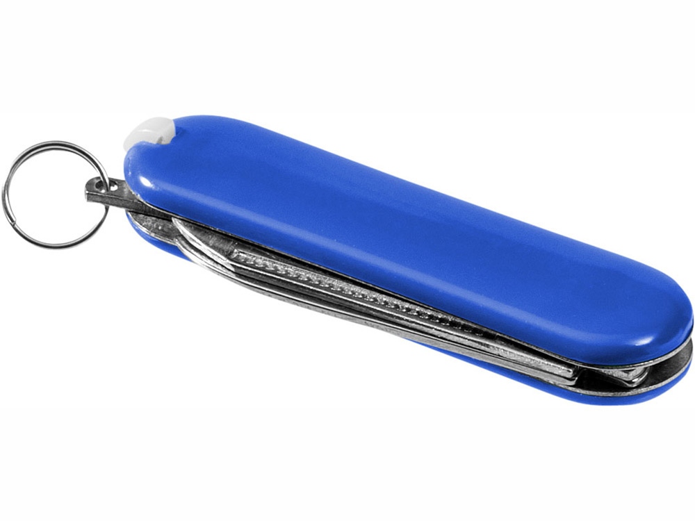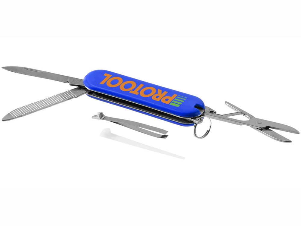Карманный нож с ножницами на пружине, пинцетом, зубочисткой, пилкой для ногтей и миниатюрным кольцом для ключей.