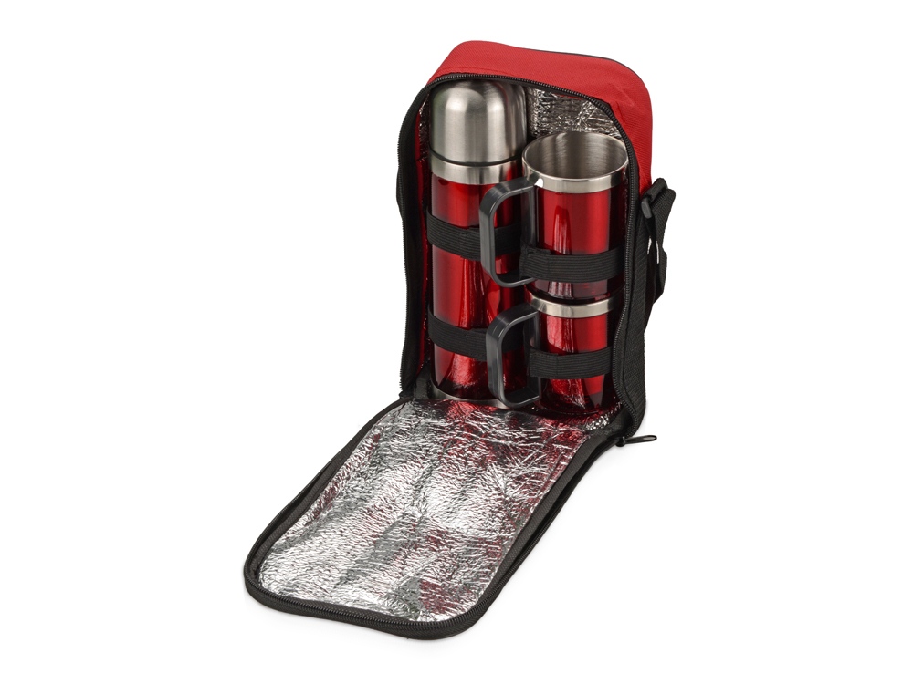 Набор состоит из термоса на 550 мл и двух кружек на 220 мл, которые складываются в удобную дорожную сумку с термоизоляцией. Термос поможет сохранить ваши напитки теплыми в течение 4 часов. Набор придется весьма кстати во время длительных прогулок, походов и даже отдыха на даче.