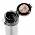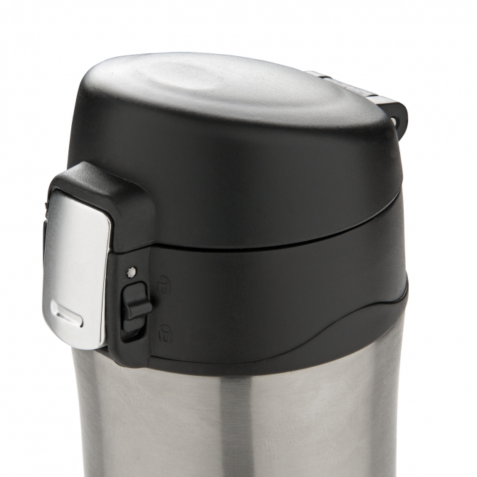 Термокружка Easy lock объемом 300 мл с двойными стенками из нержавеющей стали сохранит температуру горячего чая или кофе до 5 часов и холодного напитка до 15 часов. Запирающаяся крышка полностью устраняет риск протекания или пролива. Крышка легко моется в том числе, в посудомоечной машине. Уникальный дизайн идеально подходит для того, чтобы держать, открывать и закрывать термокружку одной рукой. Размер термокружки подходит для всех автомобильных подстаканников.