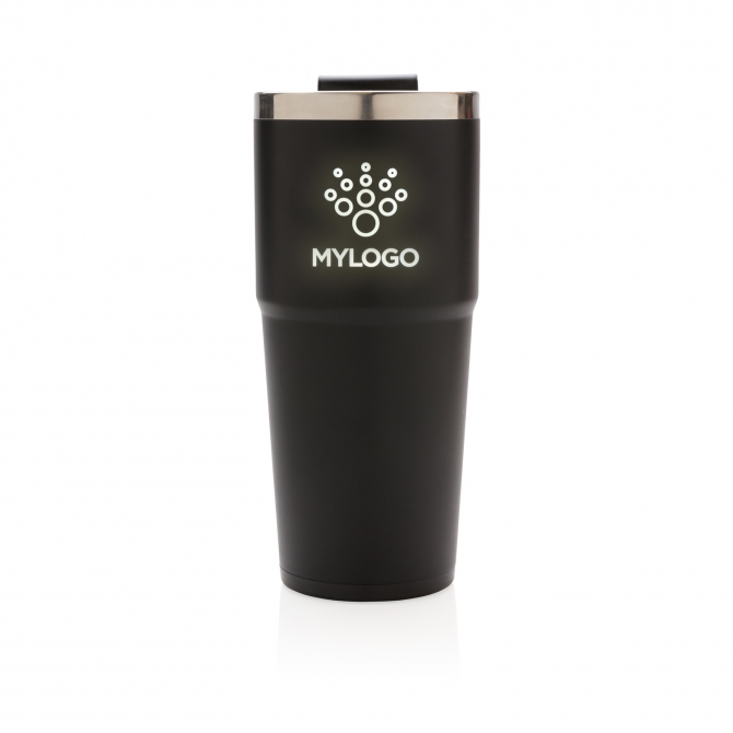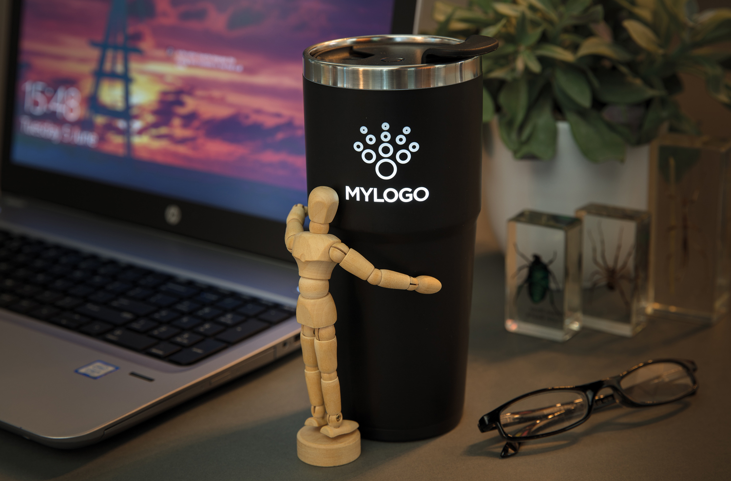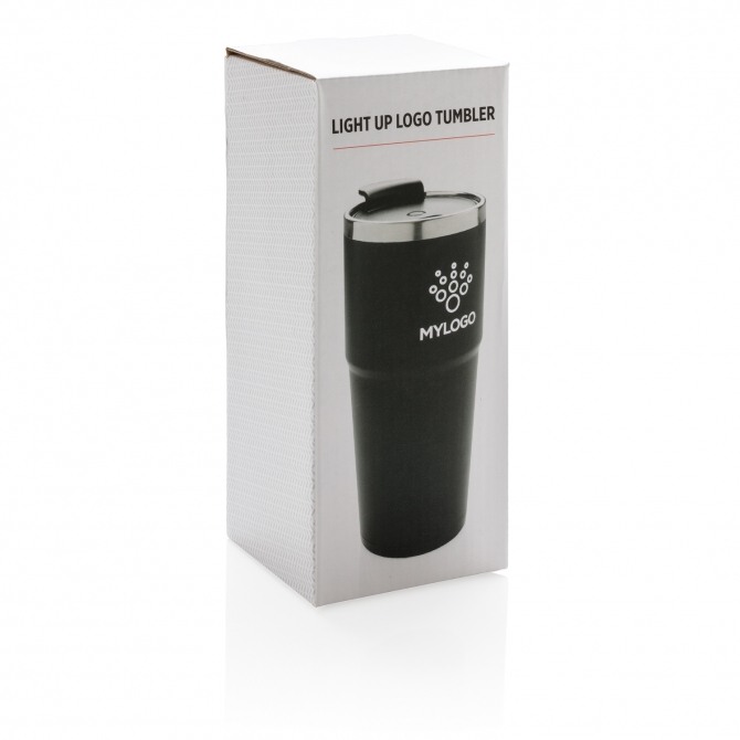 Термокружка с двойными стенками. Внутренняя часть выполнена из нержавеющей стали класса 304, внешняя - из прочного пластика ABS. Нанесите ваш логотип на данную кружку – и при ее использовании ваш логотип будет светиться на ней. 2 батарейки типа CR2032 в комплекте. Объем 480 мл.