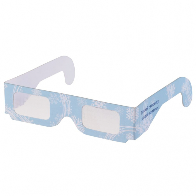 Взглянув через эти очки на источник света (светодиодные или LED-лампы), вы сможете увидеть 3D-изображение снежинки. Рекомендуем использовать очки в помещении с приглушенным освещением.