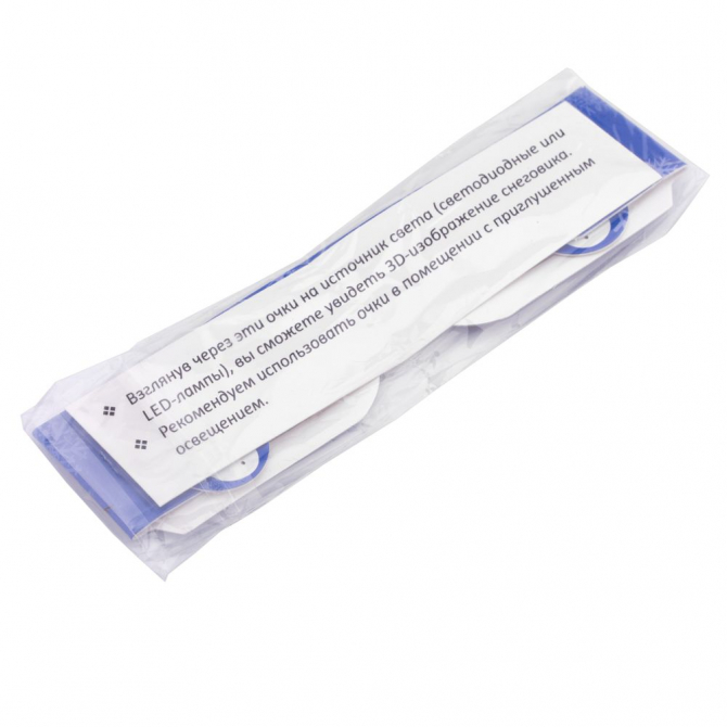 Взглянув через эти очки на источник света (светодиодные или LED-лампы), вы сможете увидеть 3D-изображение снеговика. Рекомендуем использовать очки в помещении с приглушенным освещением.