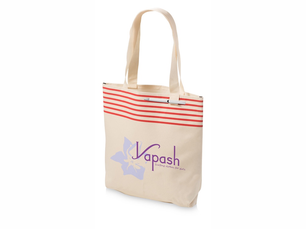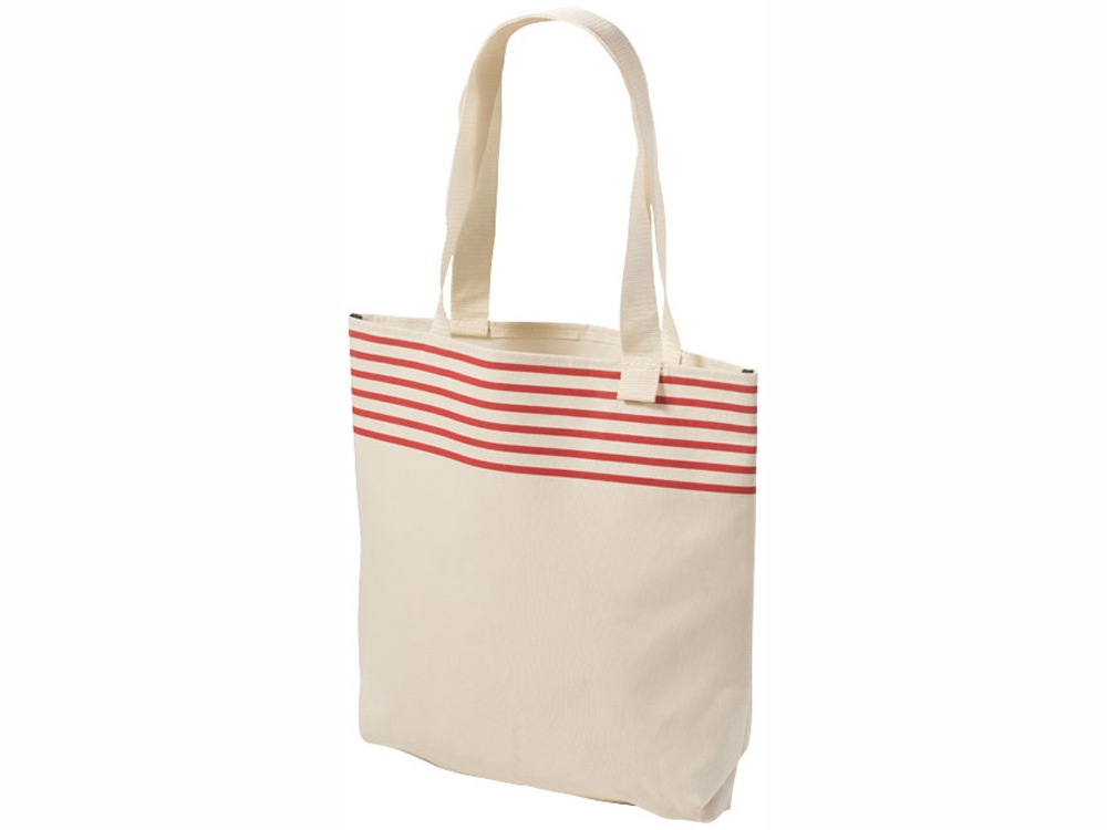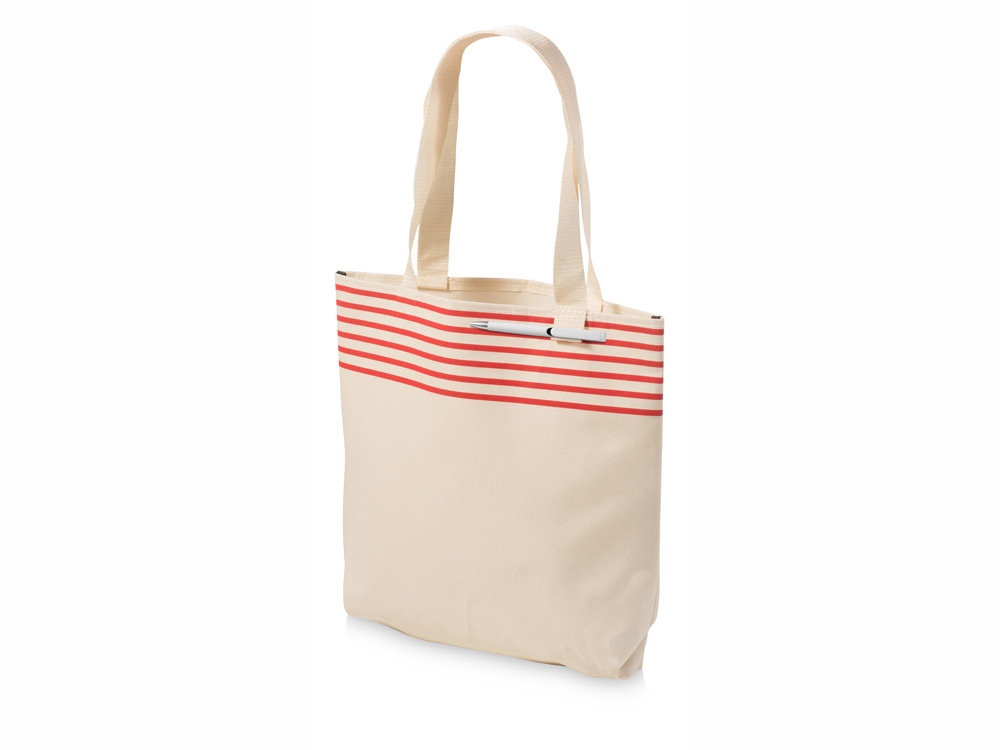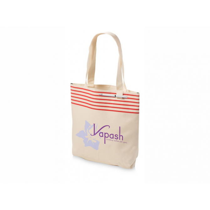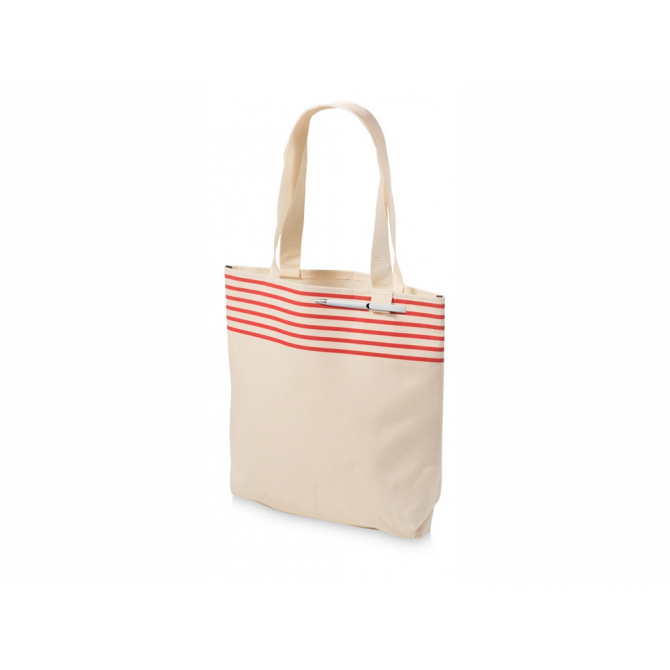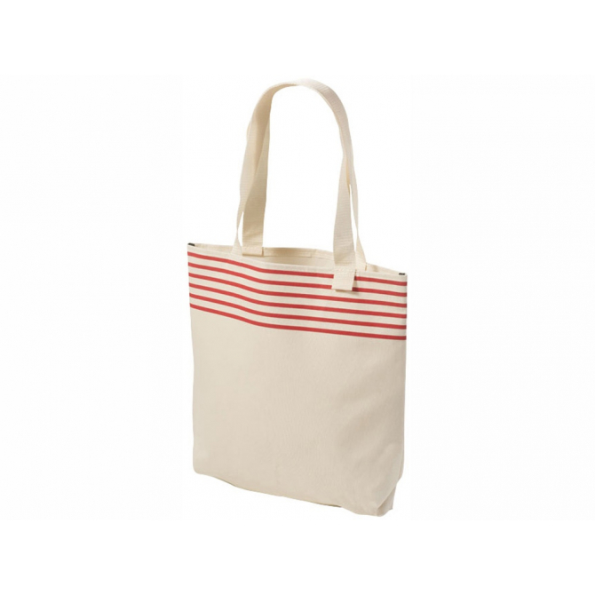 Эта элегантная полосатая сумка позволит вам почувствовать себя моряком. Открытое основное отделение и держатель для ручки спереди. Высота ручек 25 см.