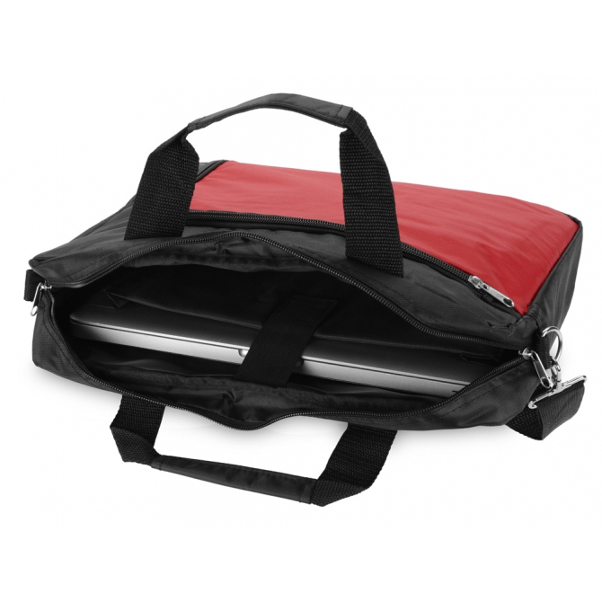 Сумка Quick предназначена для хранения и транспортировки ноутбука и документов. Оба отделения застегиваются на молнию. Яркая цветная вставка придает этой сумке праздничный вид. Плечевой ремень 1,3 м.