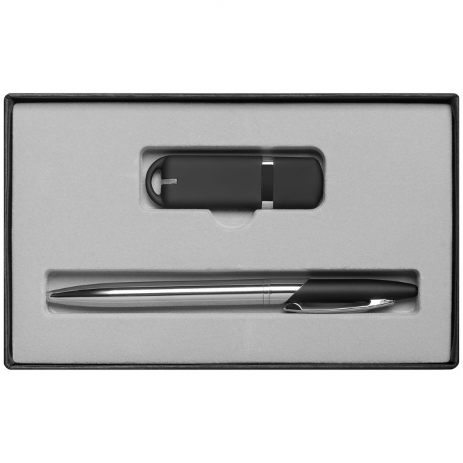флешка - пластик, покрытие софт-тач; ручка - металл, покрытие софт-тач; переплетный картон