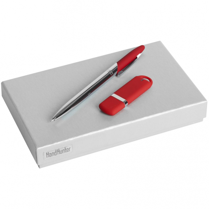 флешка - пластик, покрытие софт-тач; ручка - металл, покрытие софт-тач; переплетный картон