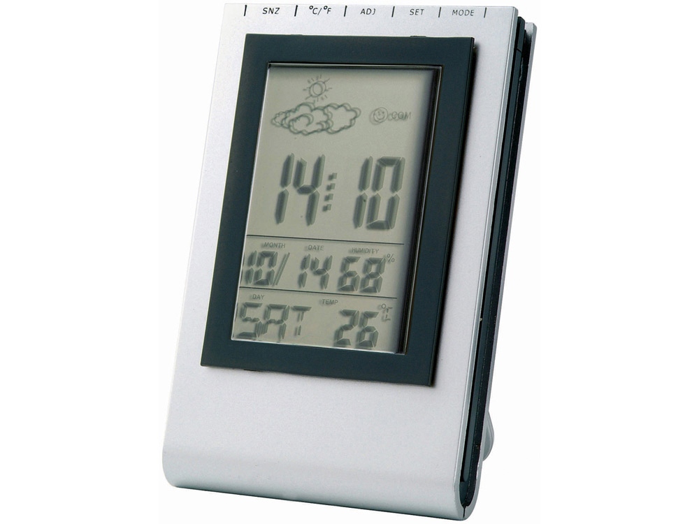 Погодная станция. Будильник, календарь, термометр C/F и гидрометр, фаза луны и прогноз погоды. Батарейка в комплекте