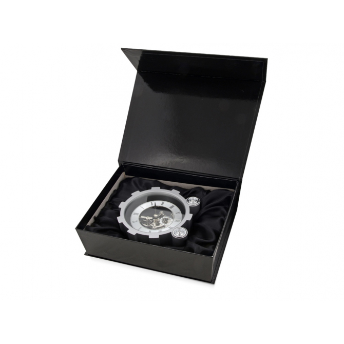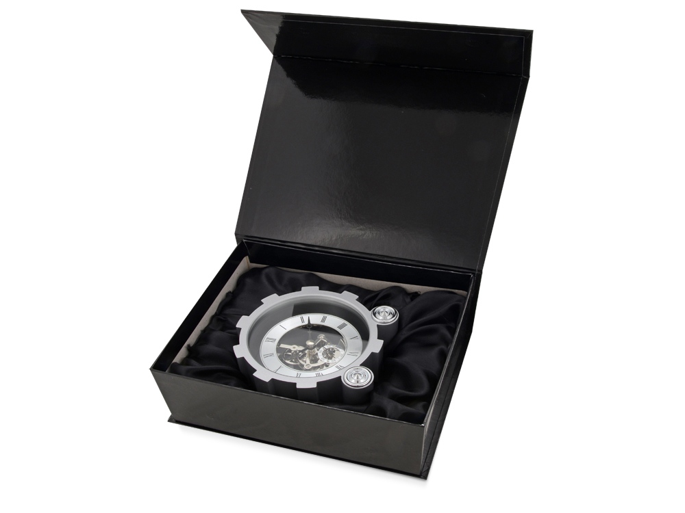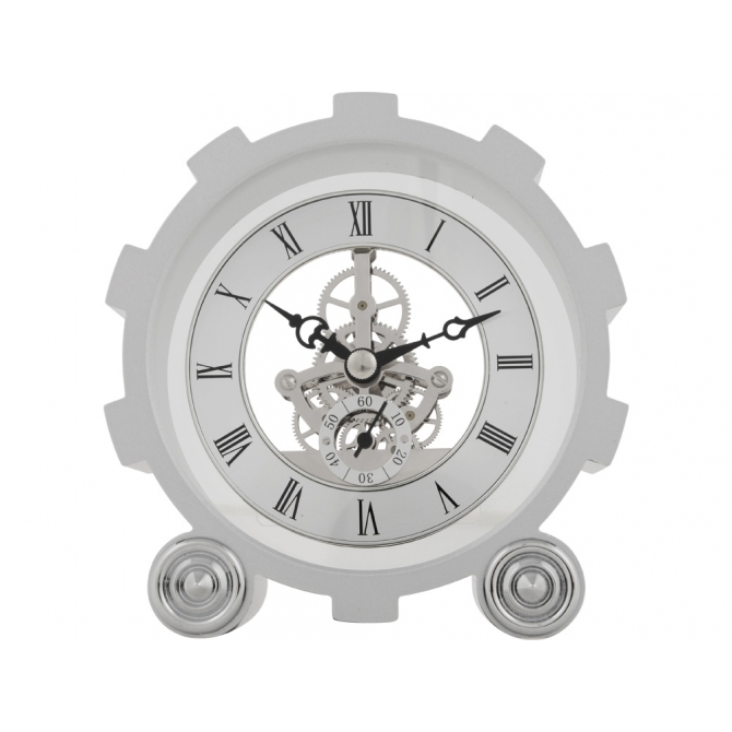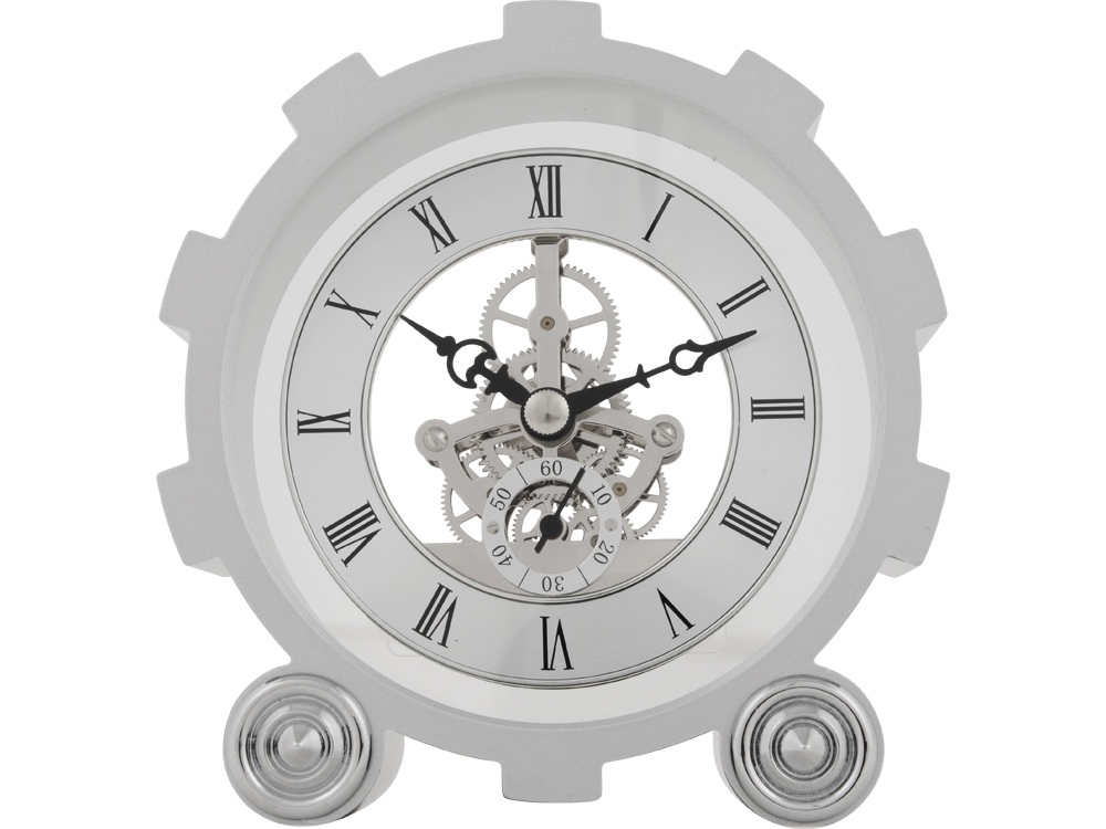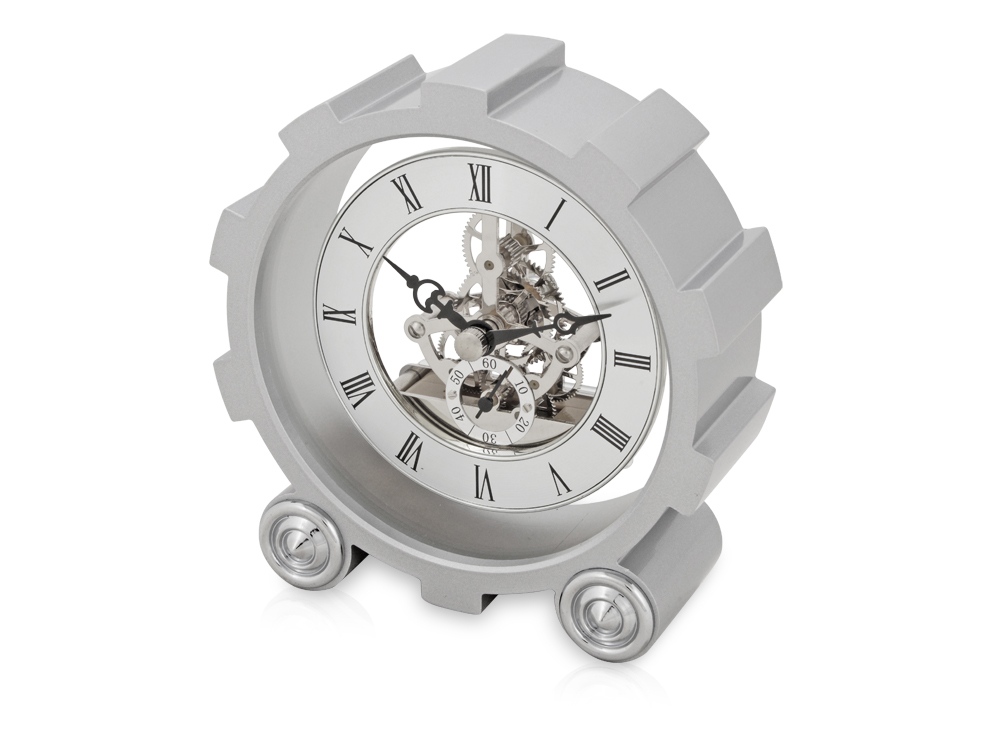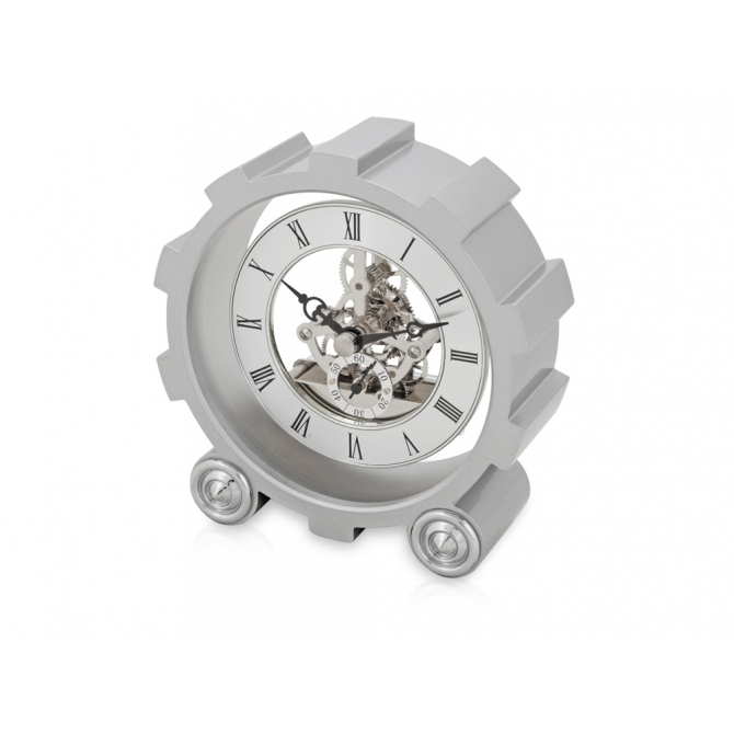 Оригинальные настольные часы выполнены в форме шестеренки. Часы отлично впишутся в интерьер любого помещения и придадут ему индивидуальность. Дизайн часов можно сделать эксклюзивным, стоит только нанести на них гравировку.