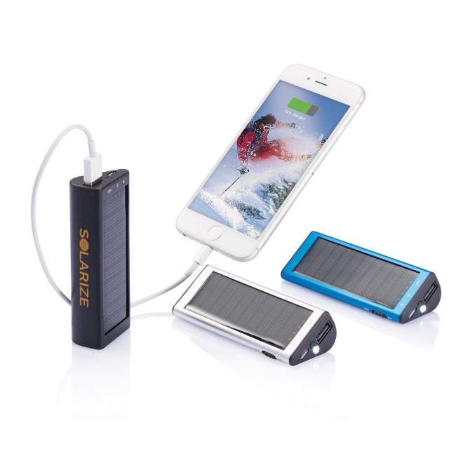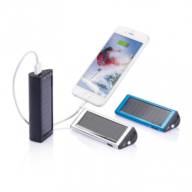 Мощное, компактное зарядное устройство на солнечной батарее с аккумулятором емкостью 2200 mAh. Его можно заряжать как от солнечного света, так и через USB-порт. Максимальная мощность на выходе 5V/1A, и 5V/1A на входе.