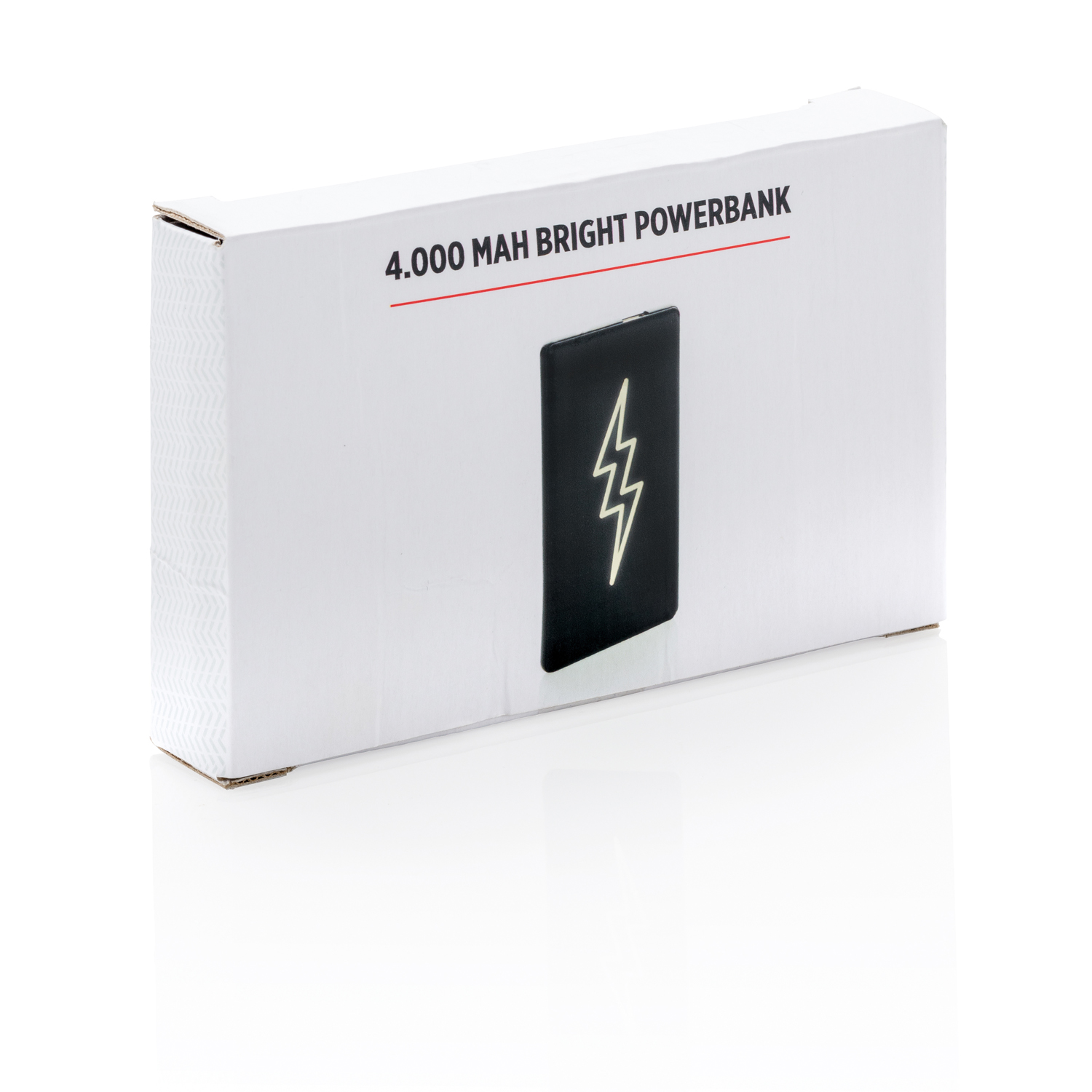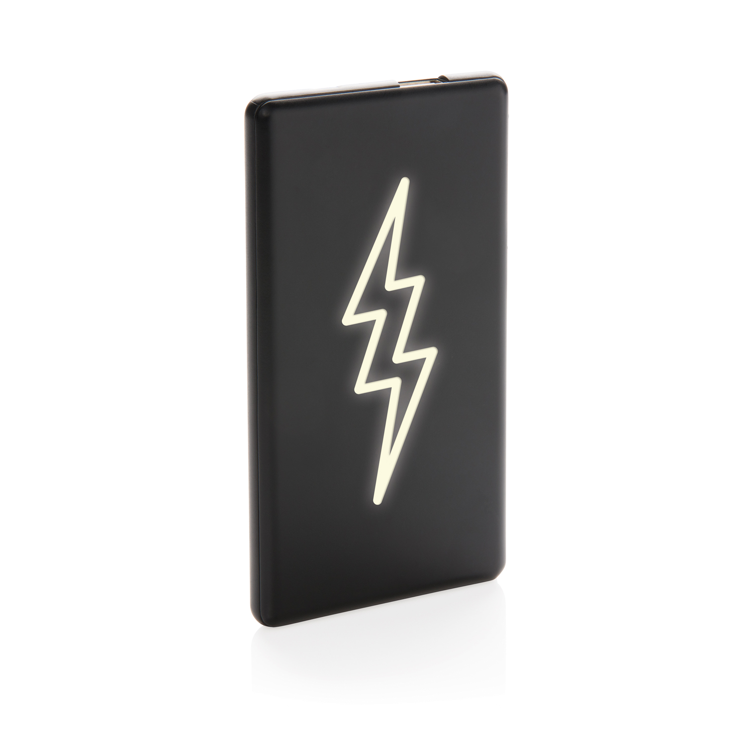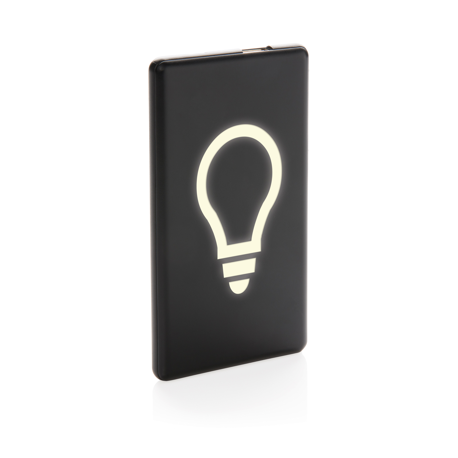 Компактный внешний аккумулятор Light up с литий-полимерной батареей емкостью 4 000 мАч изготовлен из прочного ABS-пластика. Благодаря необычному дизайну корпуса выгравированные на нем рекламное послание или логотип будут подсвечиваться. Напряжение на выходе составляет 5В/2,1A, на входе – 5В/1,5A.