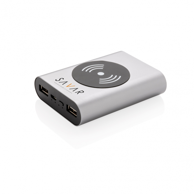 Внешний аккумулятор емкостью 5 000 мАч выполнен в стильном и надежном алюминиевом корпусе, благодаря своему уникальному дизайну, с легкостью поместится в ваш карман. Беспроводную зарядку на 5W смогут оценить все пользователи моделей нового поколения Android, iPhone 8 и выше. В устройстве есть два порта USB, что позволяет заряжать гаджеты при помощи кабеля. Энергии литий-полимерной батареи хватит, чтобы зарядить ваш смартфон до трех раз. Удобные световые индикаторы отображают уровень заряда, напоминая о необходимости подзарядить устройство. Напряжение на входе составляет 5В / 2,1A. Micro-USB: 5В / 1,5А. Беспроводной выход: 5W 5В / 1A.