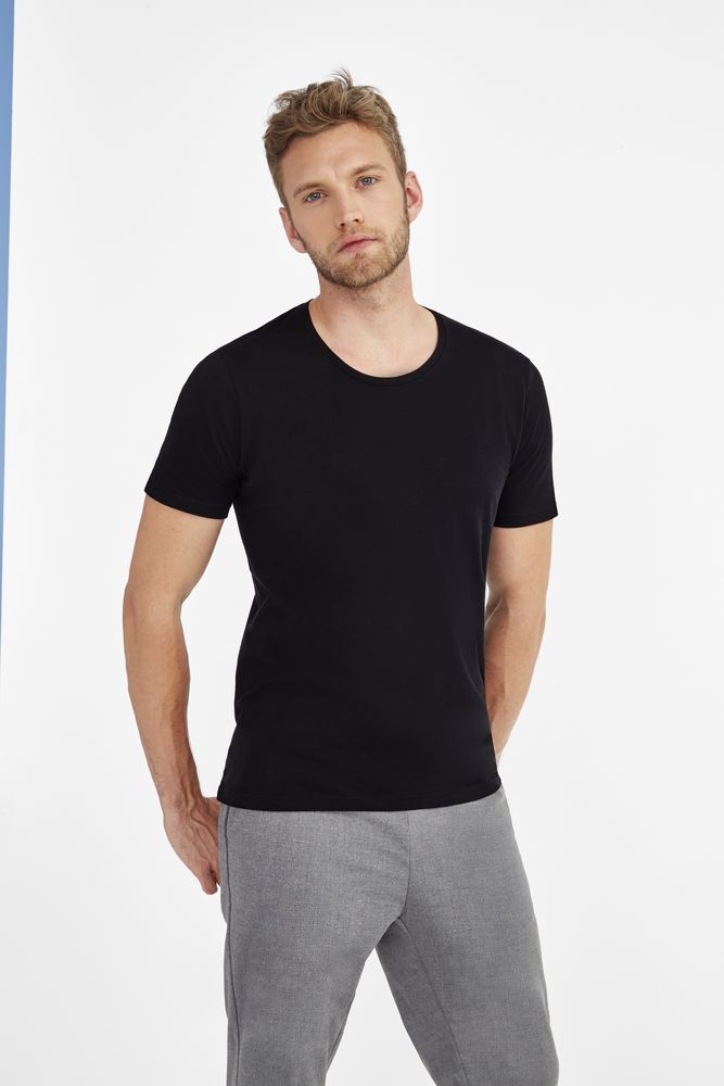 Облегающая модель. Отделка двойной строчкой на рукавах и по низу изделия.