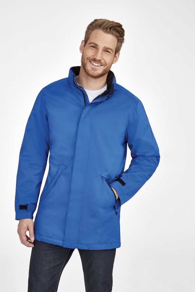 Застежка-молния с двумя замками и планкой на липучках и скрытых кнопках. Капюшон с подкладкой из флиса убирается в воротник. Два внешних кармана на молнии, один внутренний. Регулируемые манжеты на липучках.