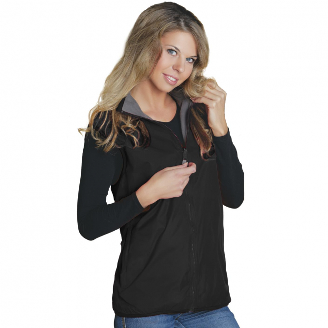 двусторонний женский жилет два боковых кармана на молнии комфортные эластичные окантовки по краям флисовая сторона с потайным карманом для персонализации практичный водо- и грязеотталкивающий материал Материал верха: Taffeta 210Т (100% нейлон) Подклад: флис (100% полиэстер)