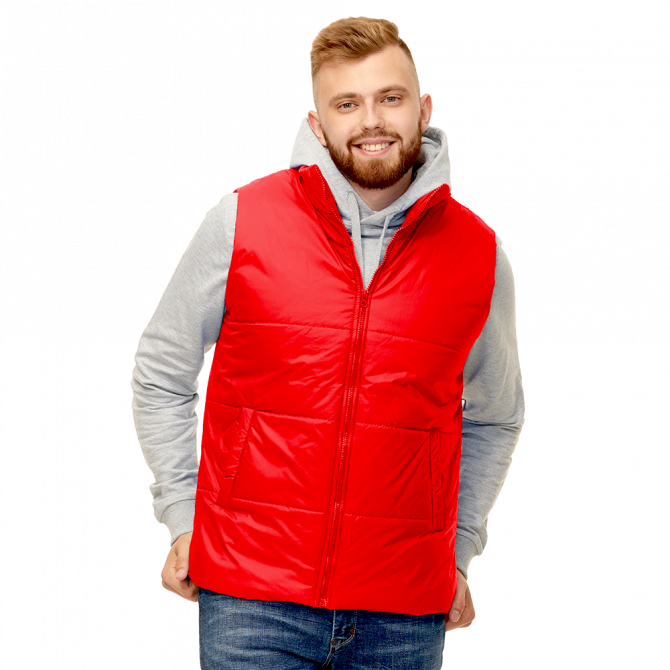 базовый утепленный жилет надежная прочная молния большое поле для печати на груди и спине удобные глубокие карманы широкий размерный ряд до 5XL водонепроницаемый материал оптимален для использования в торговых и складских помещениях