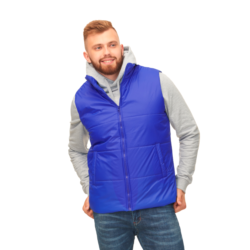 базовый утепленный жилет надежная прочная молния большое поле для печати на груди и спине удобные глубокие карманы широкий размерный ряд до 5XL водонепроницаемый материал оптимален для использования в торговых и складских помещениях