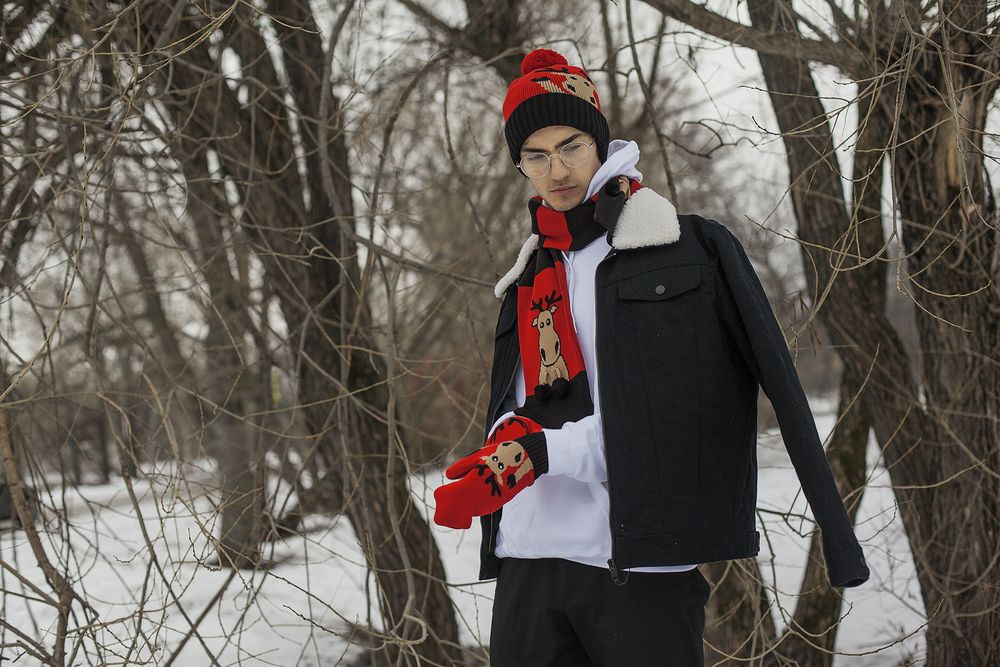 Лоси славятся своим сумасбродным характером: если лосю что-то не понравилось, лучше держаться подальше! Линейка MadMade посвящена уникальному в своем роде лосю-меланхолику. В нем нет ни грамма агрессии, зато есть легкая безуминка. Он мягкий, добрый и задумчивый. Философия жизни или просто образ — так или иначе MadMade создает настроение, от которого становится теплее.Двухслойный шарф с жаккардовым рисунком и подвижными элементами.
