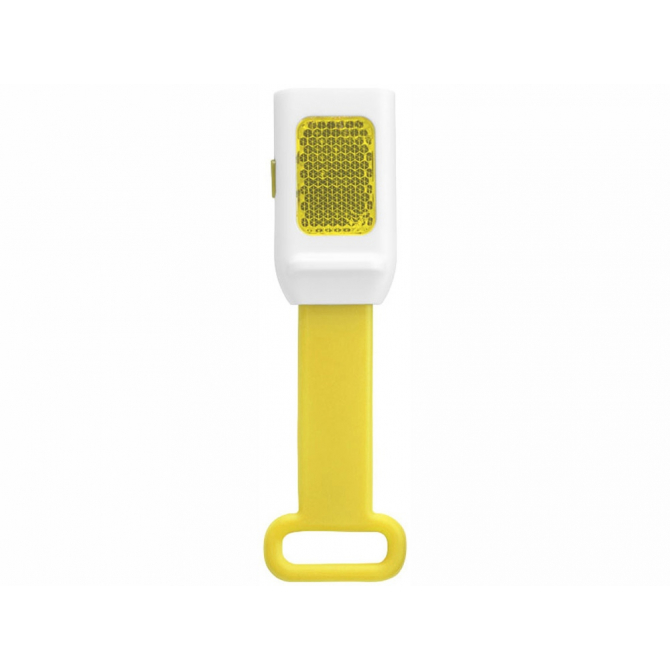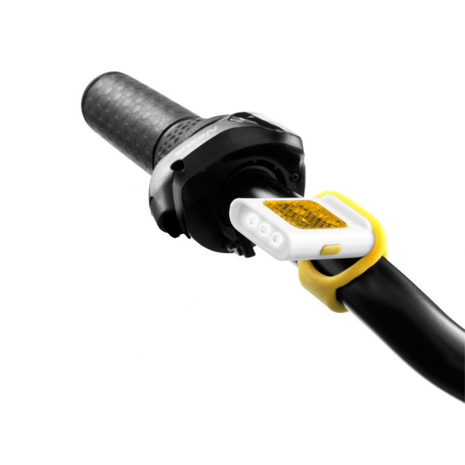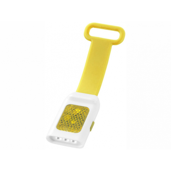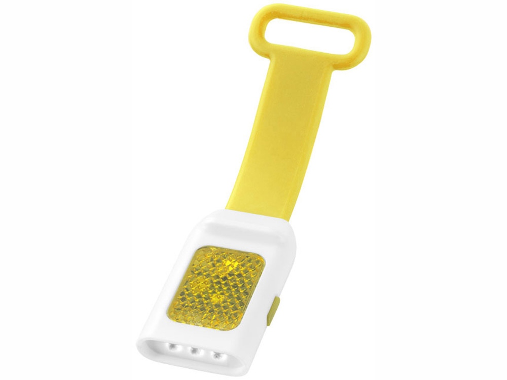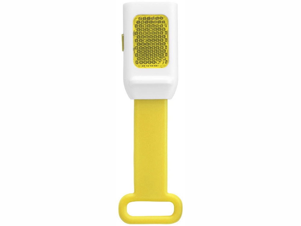 Отражатель для использования на улице с 3 яркими белыми светодиодами и функцией равномерного мигания. Эластичный силиконовый ремень для удобного присоединения к велосипеду или сумке.