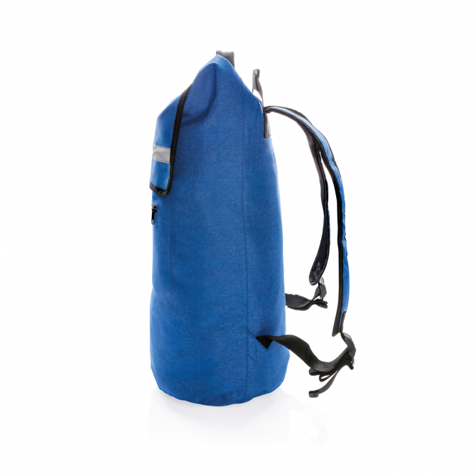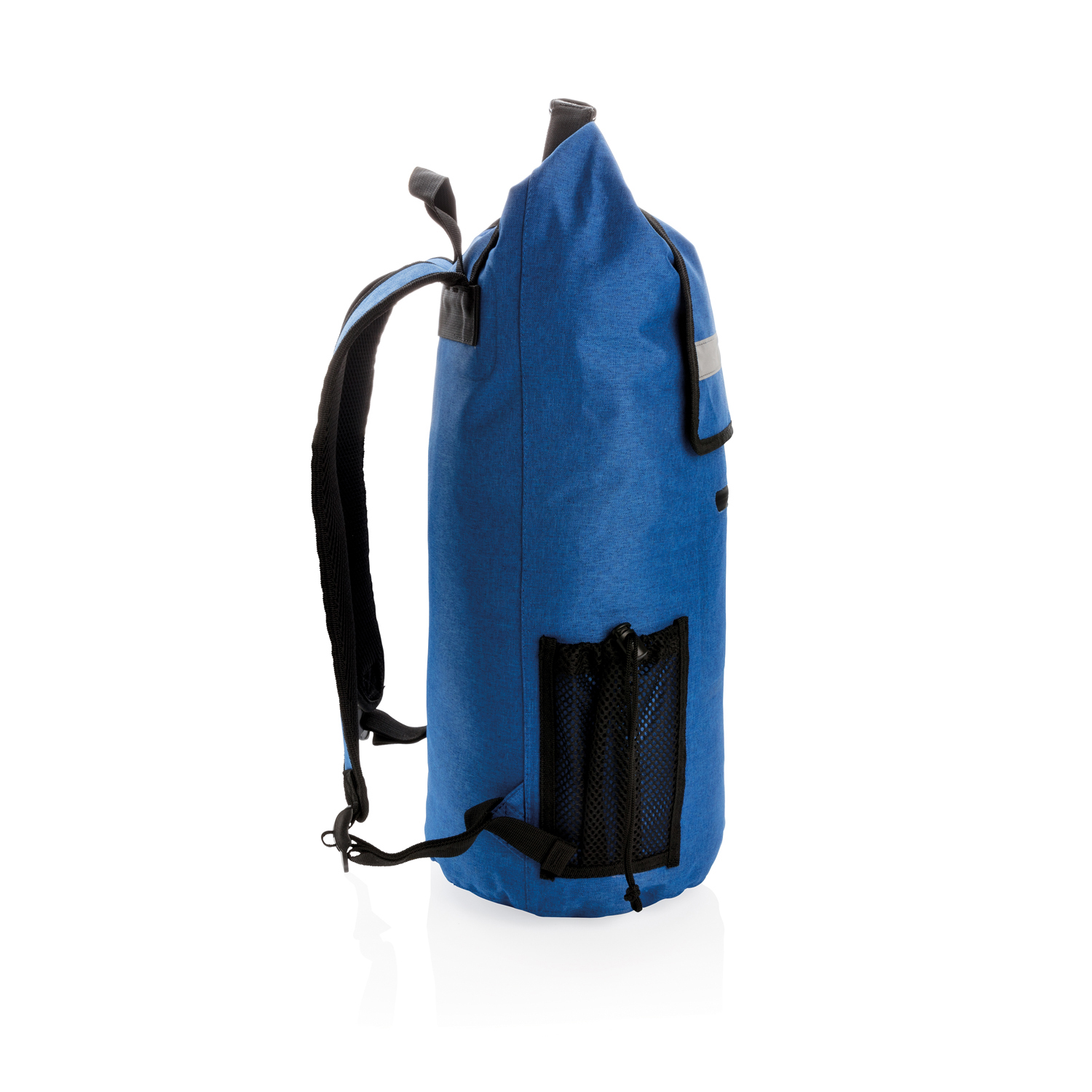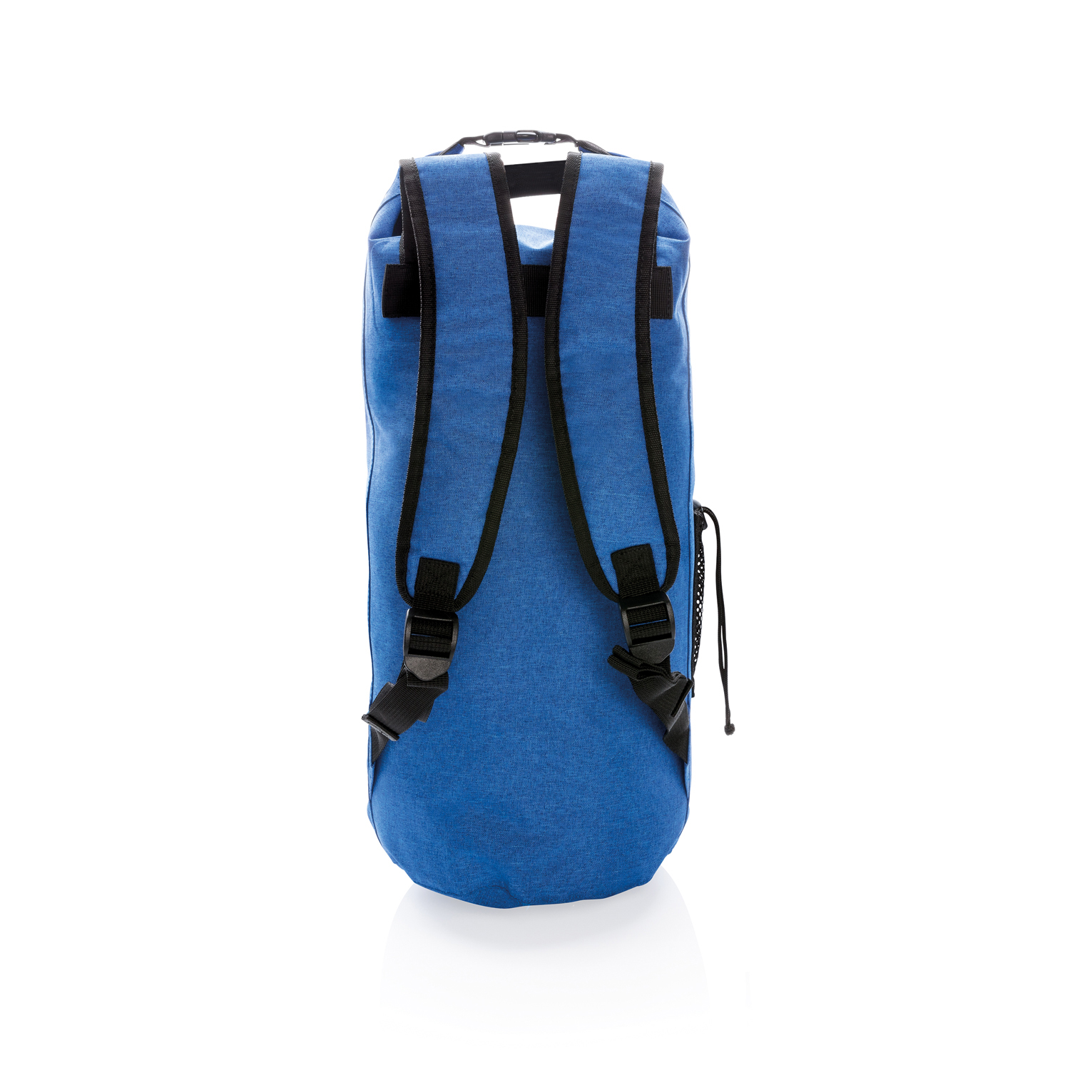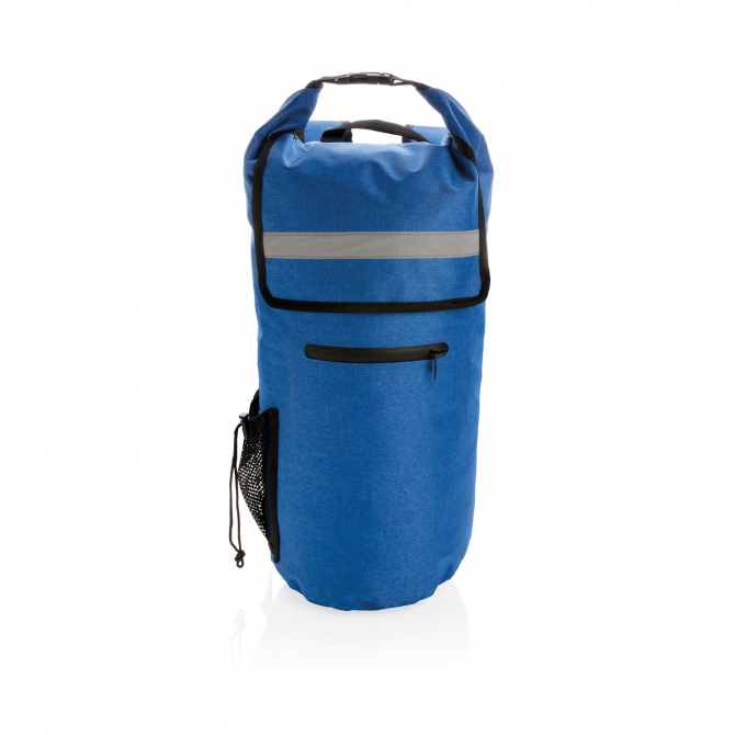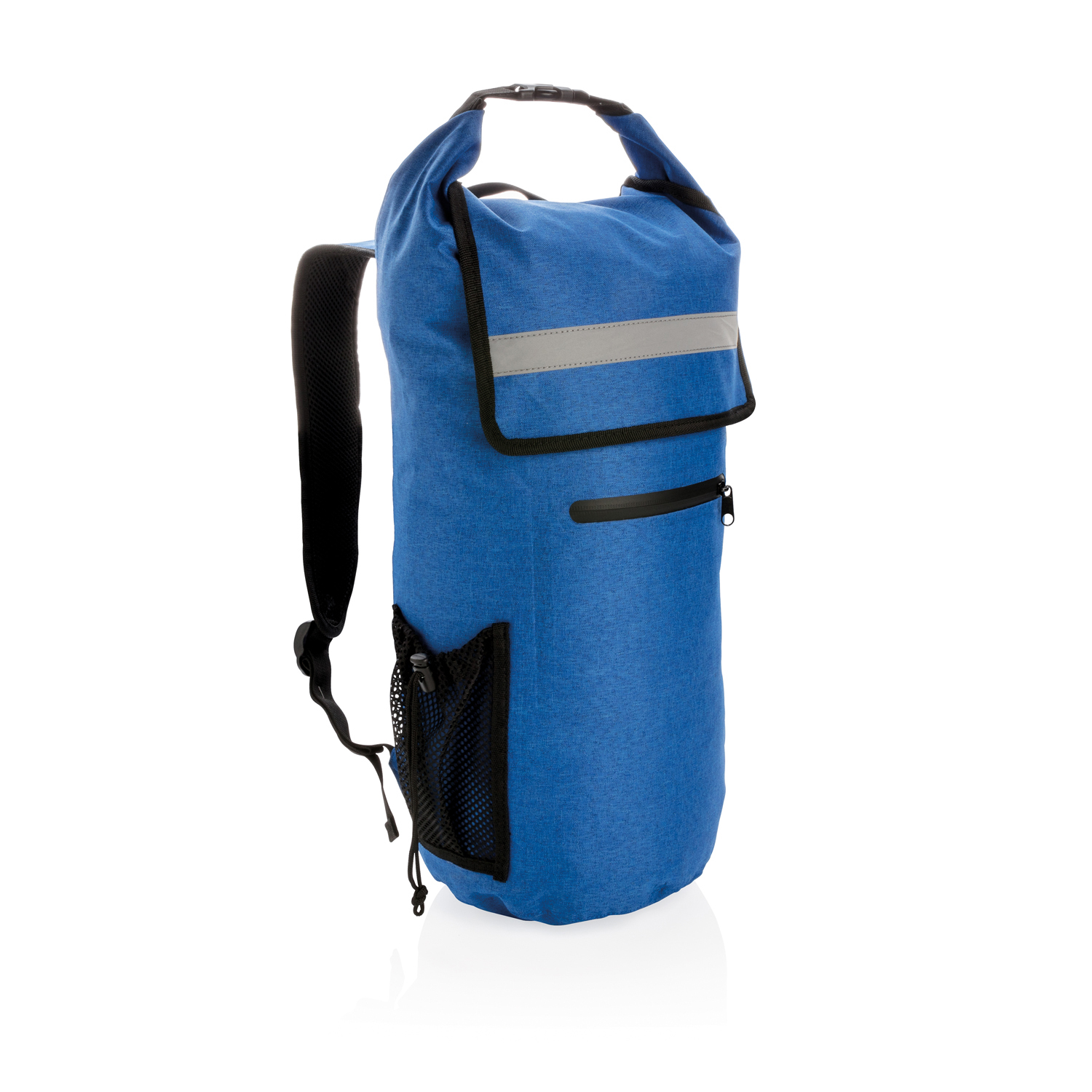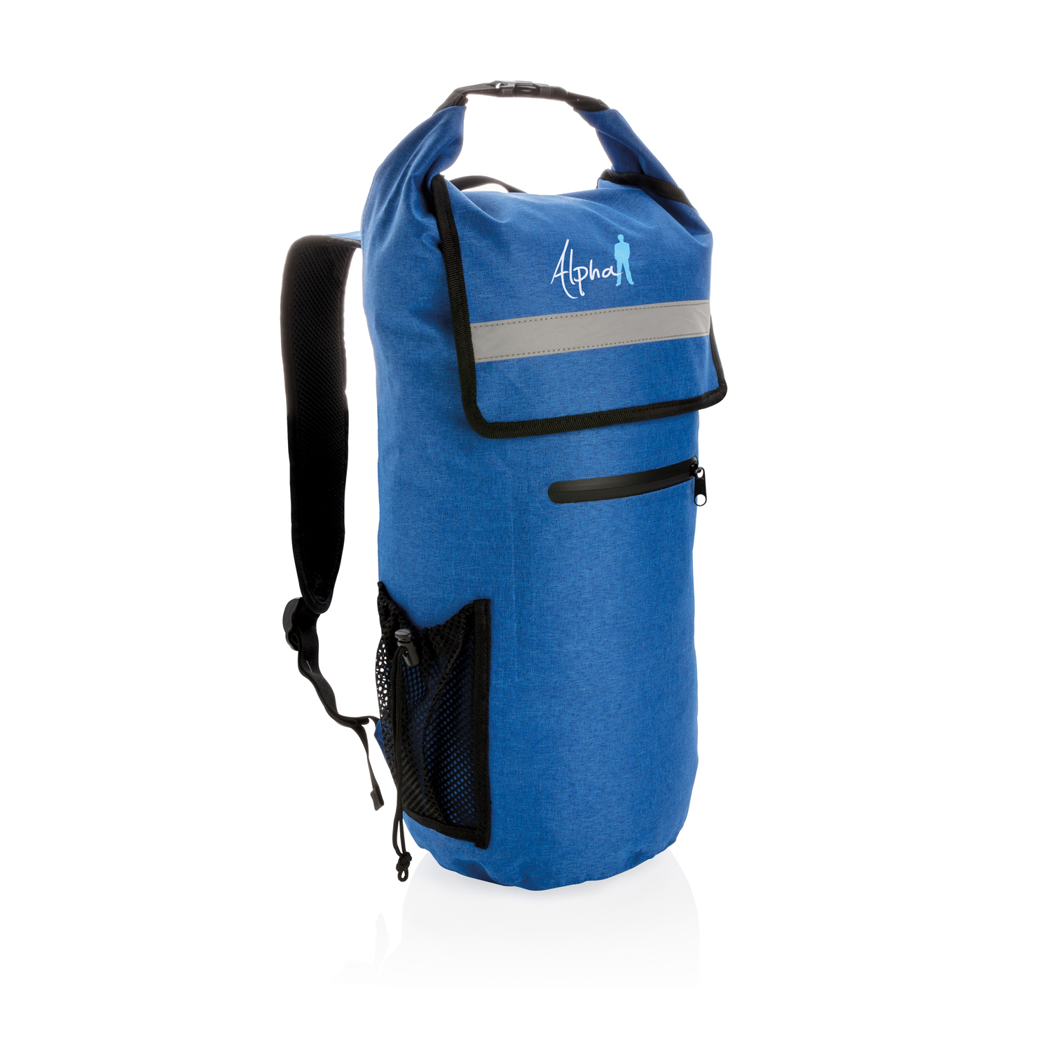 Рюкзак из полиэстера плотностью 300D с основным отсеком, отвечающим стандарту водонепроницаемости IPX6, идеально подходит для путешествий и сохраняет все ваши вещи в безопасности. Он очень пригодится при занятиях водным туризмом и в путешествиях. На рюкзаке есть боковой карман для бутылки с водой и светоотражающая полоска. Передний карман на молнии не является водоотталкивающим.