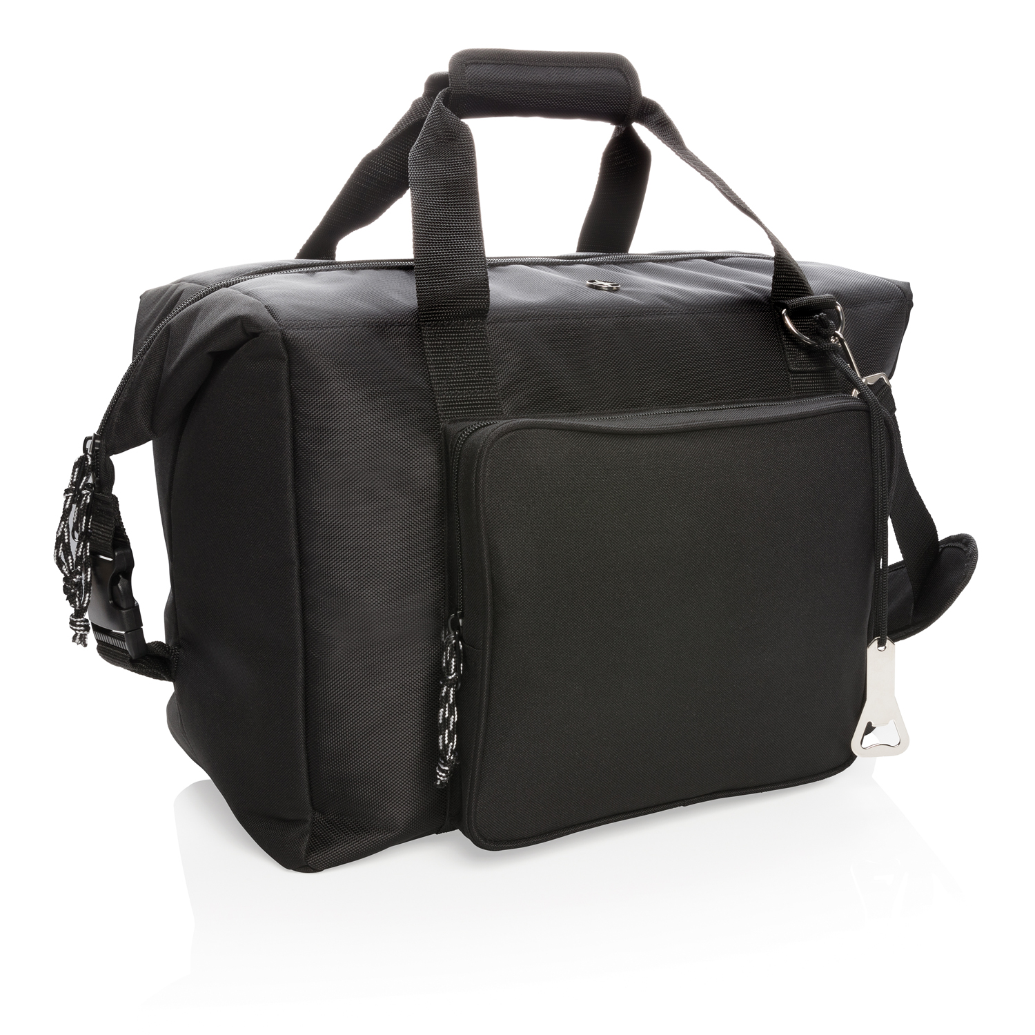 Стильная сумка-холодильник от бренда Swiss Peak изготовлена из двух видов полиэстера (600 D и 1800 D). Просторное основное отделение и передний карман на молнии. Легко трансформируется в обычную вещевую сумку, если убрать боковые накладки. Объем - 40 л (до 10 полуторалитровых бутылок или 52 алюминиевые банки). Двойные ручки повышенной прочности. Съемный плечевой ремень. Поставляется с открывалкой для стеклянных бутылок. Изоляционный слой выполнен из винил-полиэтилена.
