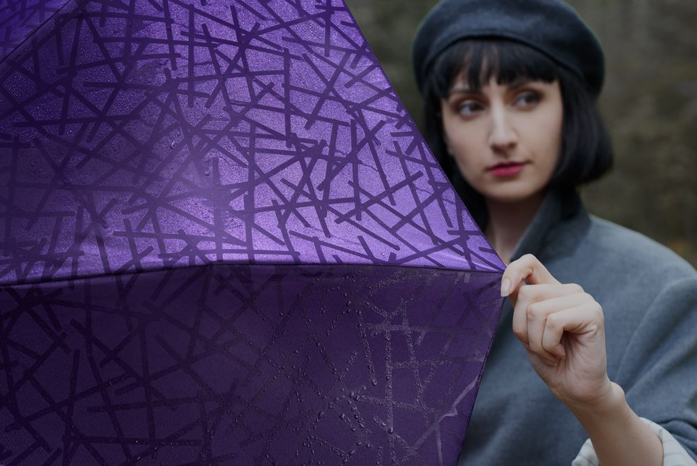 На первый взгляд это строгий складной зонт с системой защиты от ветра и удобной прорезиненной ручкой. Но стоит пойти дождю, и на зонте тут же проявляются узоры. После высыхания рисунок исчезает.