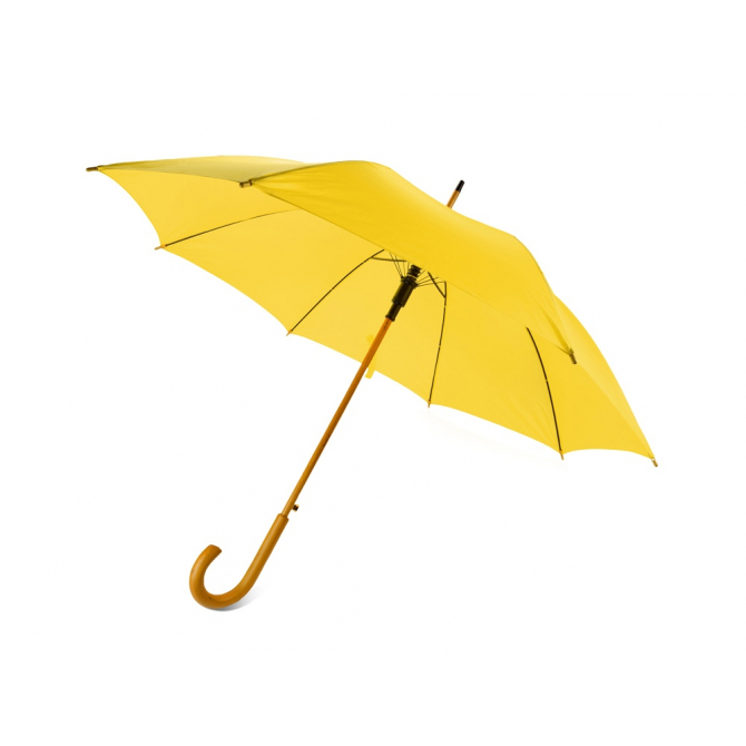 Полуавтоматический зонт-трость с деревянной ручкой выполнен из качественных материалов и устойчив к сильным порывам ветра. Яркие, сочные цвета в ассортименте. Материал позволяет нанести нужную информацию методом термотрансфера и гравировки.