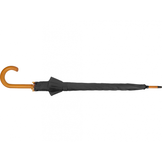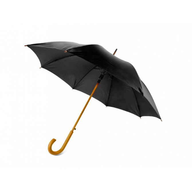 Полуавтоматический зонт-трость с деревянной ручкой выполнен из качественных материалов и устойчив к сильным порывам ветра. Яркие, сочные цвета в ассортименте. Материал позволяет нанести нужную информацию методом термотрансфера и гравировки.