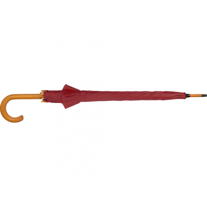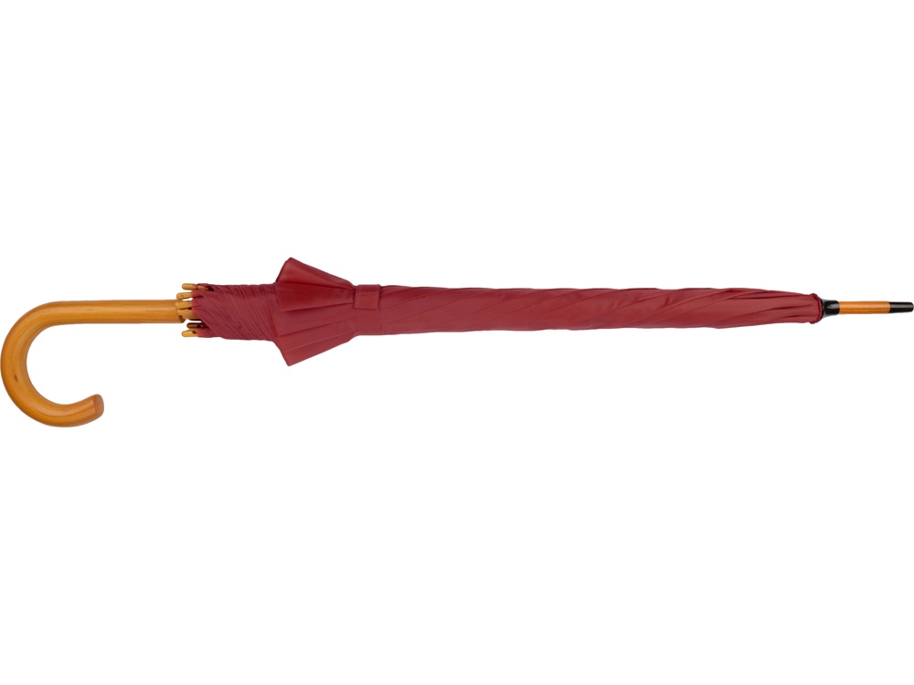 Полуавтоматический зонт-трость с деревянной ручкой выполнен из качественных материалов и устойчив к сильным порывам ветра. Яркие, сочные цвета в ассортименте. Материал позволяет нанести нужную информацию методом термотрансфера и гравировки.