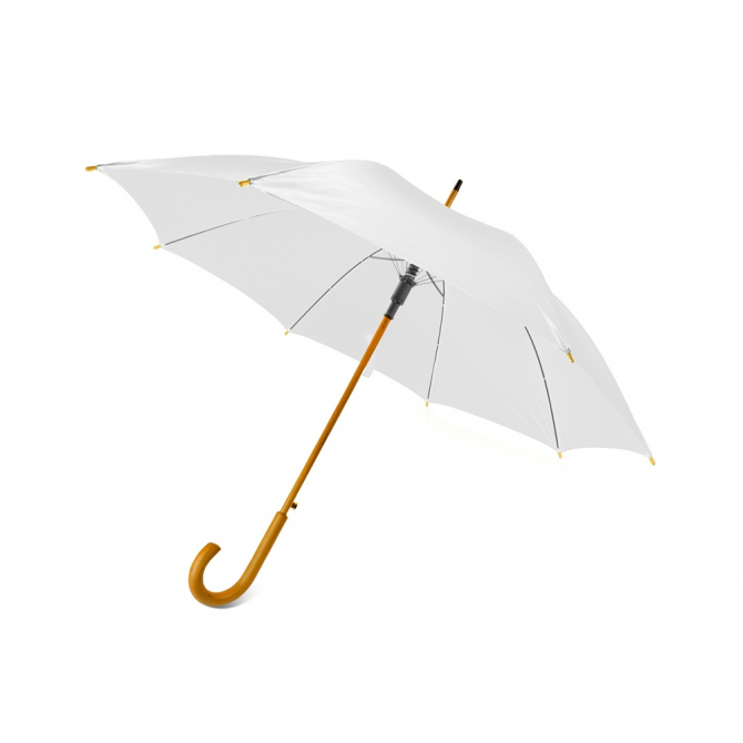 Полуавтоматический зонт-трость с деревянной ручкой выполнен из качественных материалов и устойчив к сильным порывам ветра. Яркие, сочные цвета в ассортименте. Материал позволяет нанести нужную информацию методом термотрансфера и гравировки.