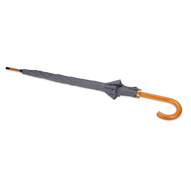 Полуавтоматический зонт-трость с деревянной ручкой выполнен из качественных материалов и устойчив к сильным порывам ветра. Яркие, сочные цвета в ассортименте. Материал позволяет нанести нужную информацию методом термотрансфера и гравировки.